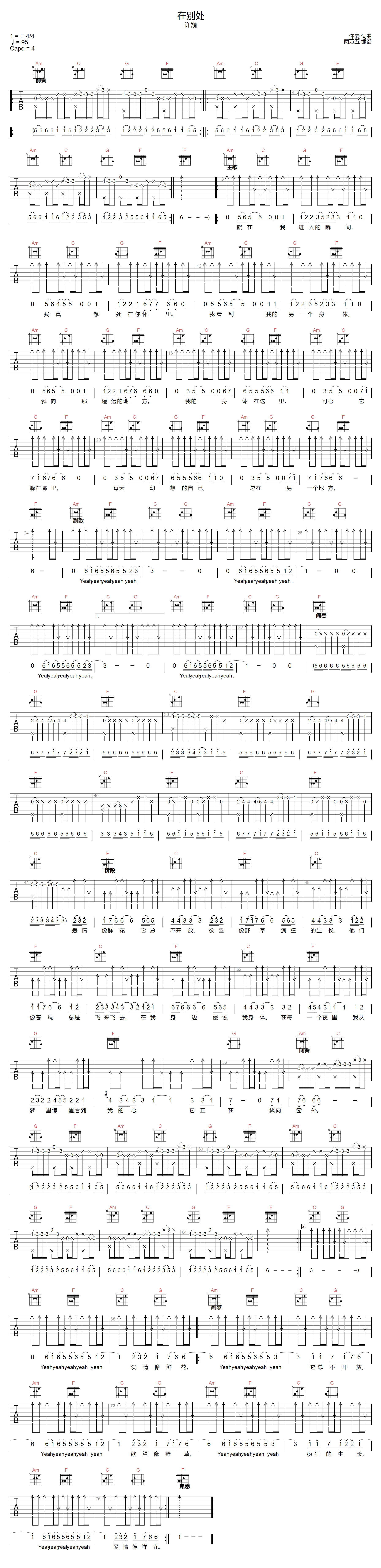 《许巍《在别处吉他谱》(C调)》内容来自于互联网,不能保证内容的准确性与完整性,仅供学习交流欣赏,请勿用于其它用途,内容版权归原作者及来源网站所有,如有侵犯到您的权益请来信告知,我们将及时删除。