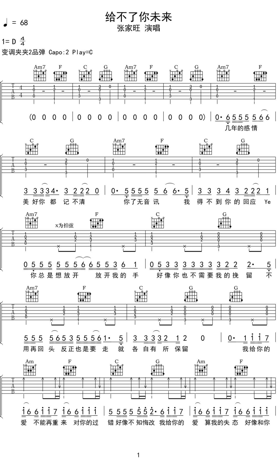 《张家旺《给不了你未来吉他谱》(G调)》内容来自于互联网,不能保证内容的准确性与完整性,仅供学习交流欣赏,请勿用于其它用途,内容版权归原作者及来源网站所有,如有侵犯到您的权益请来信告知,我们将及时删除。