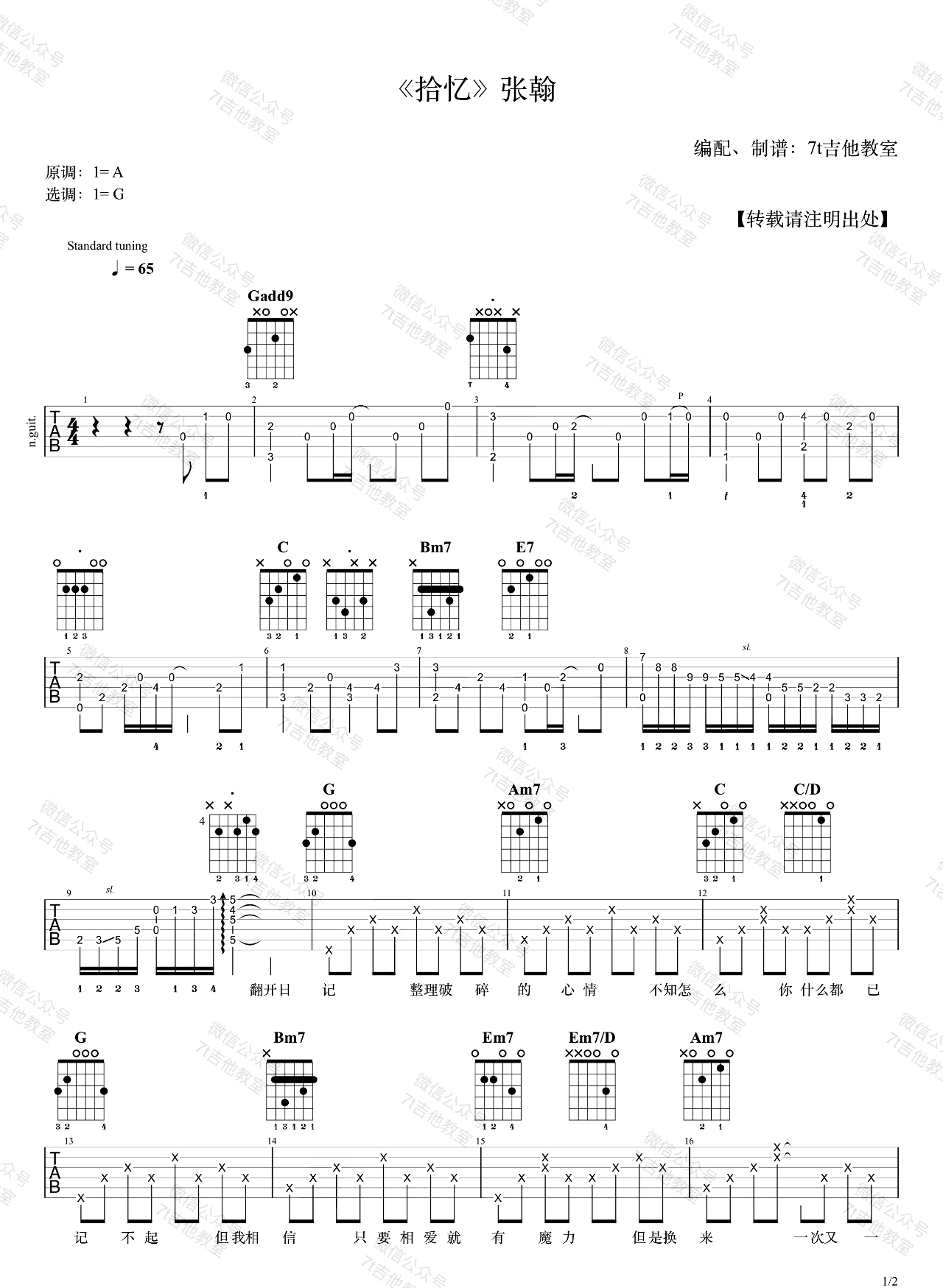 《张翰《拾忆吉他谱》(C调)》内容来自于互联网,不能保证内容的准确性与完整性,仅供学习交流欣赏,请勿用于其它用途,内容版权归原作者及来源网站所有,如有侵犯到您的权益请来信告知,我们将及时删除。