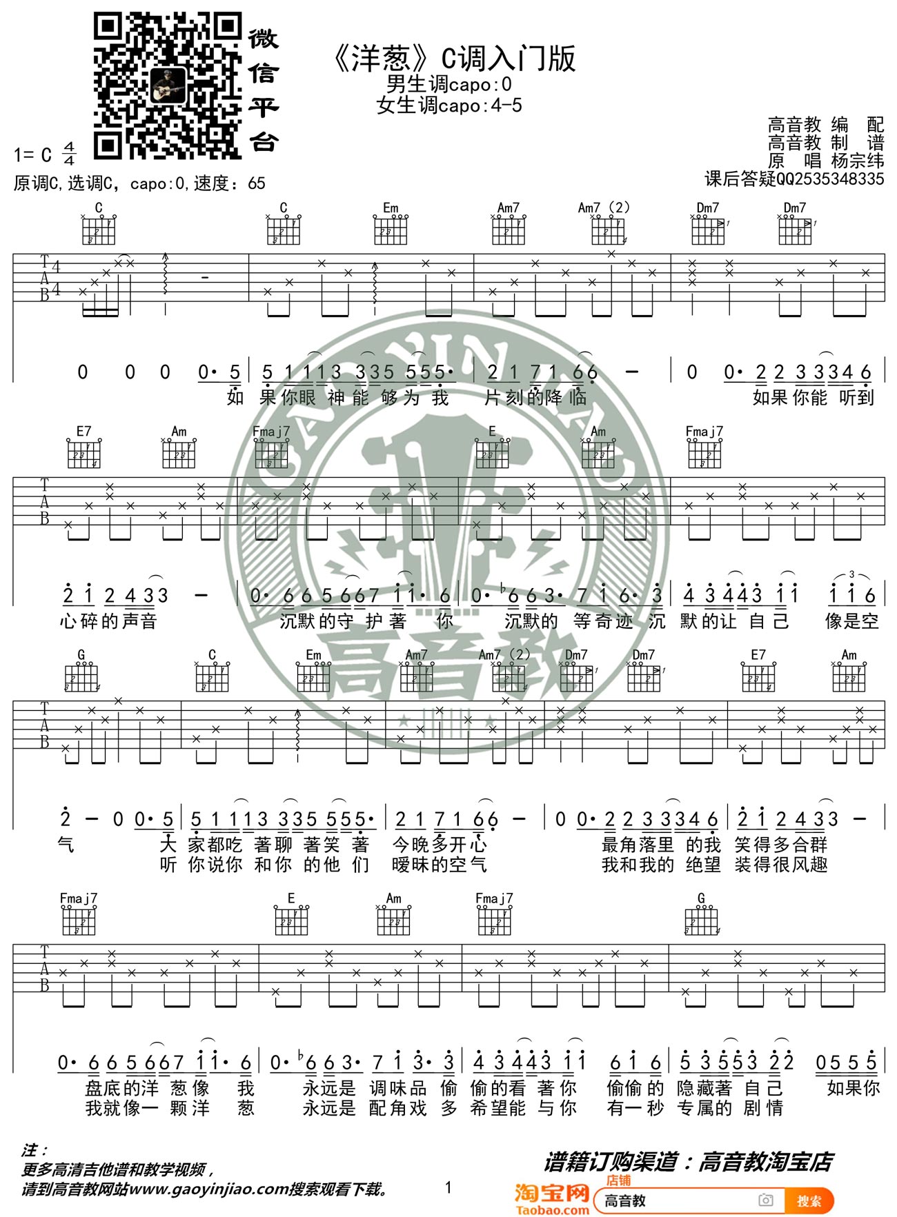 《杨宗纬《洋葱吉他谱》(C调)》内容来自于互联网,不能保证内容的准确性与完整性,仅供学习交流欣赏,请勿用于其它用途,内容版权归原作者及来源网站所有,如有侵犯到您的权益请来信告知,我们将及时删除。