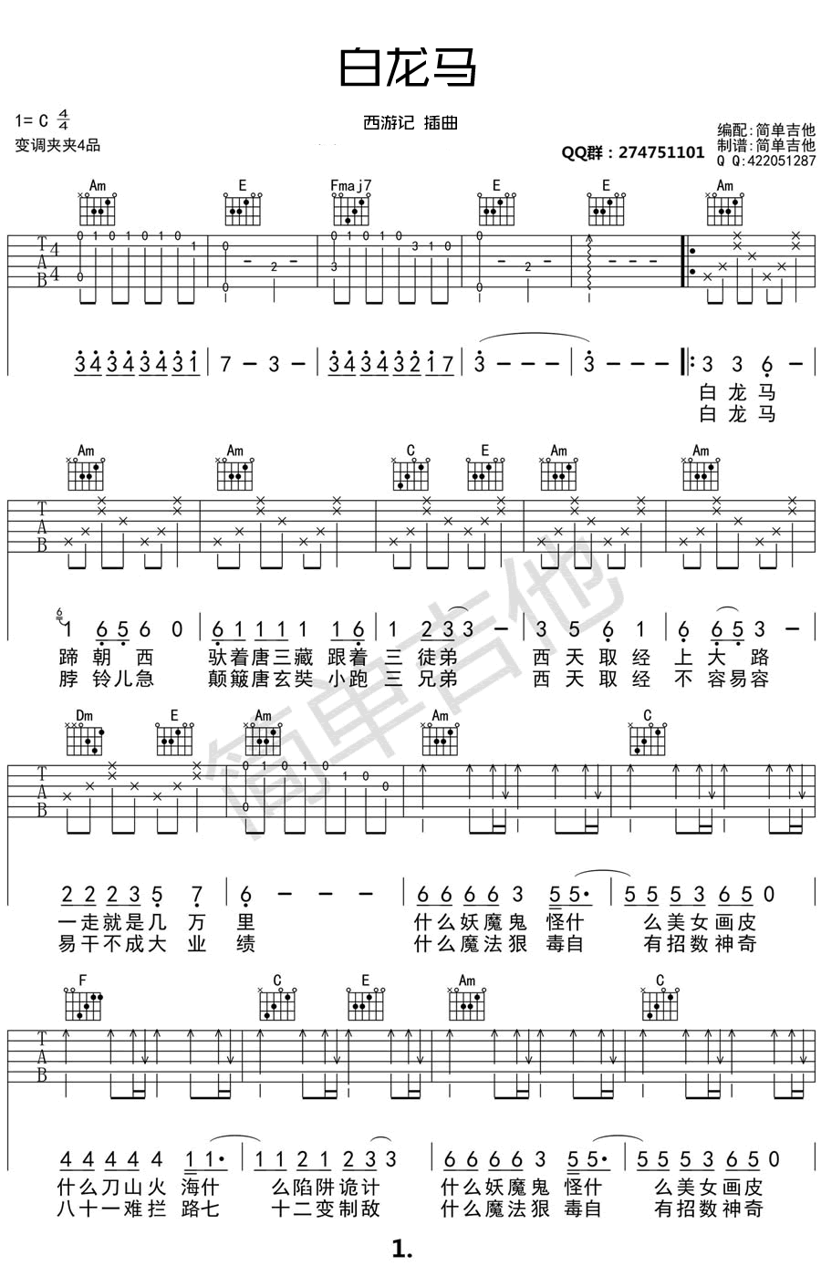 《吸引力合唱组《白龙马吉他谱》(C调)》内容来自于互联网,不能保证内容的准确性与完整性,仅供学习交流欣赏,请勿用于其它用途,内容版权归原作者及来源网站所有,如有侵犯到您的权益请来信告知,我们将及时删除。