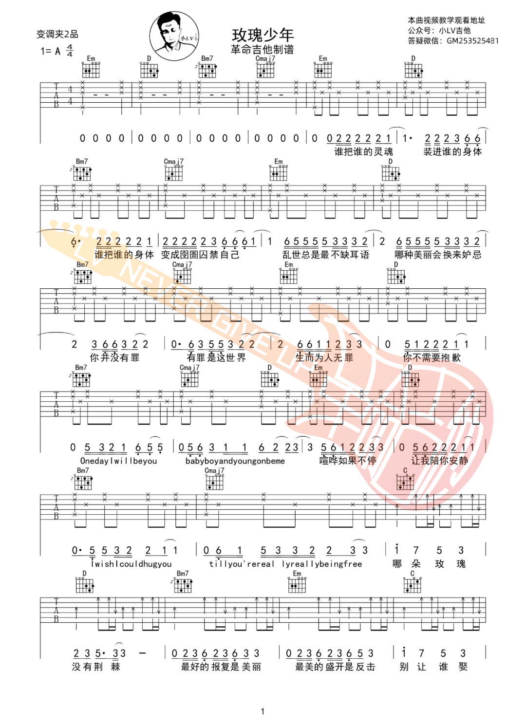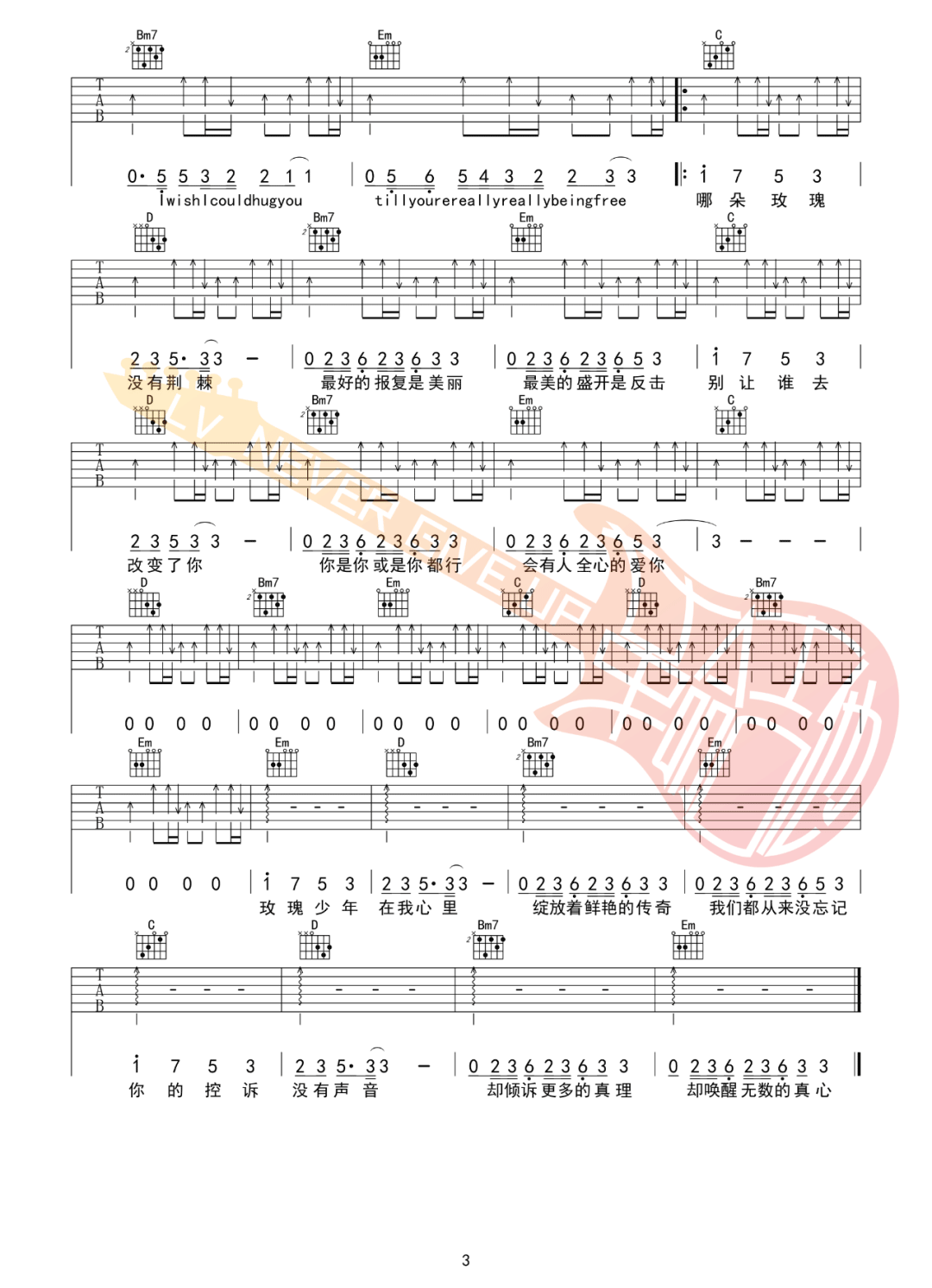 《五月天/蔡依林《玫瑰少年吉他谱》(F调)》内容来自于互联网,不能保证内容的准确性与完整性,仅供学习交流欣赏,请勿用于其它用途,内容版权归原作者及来源网站所有,如有侵犯到您的权益请来信告知,我们将及时删除。
