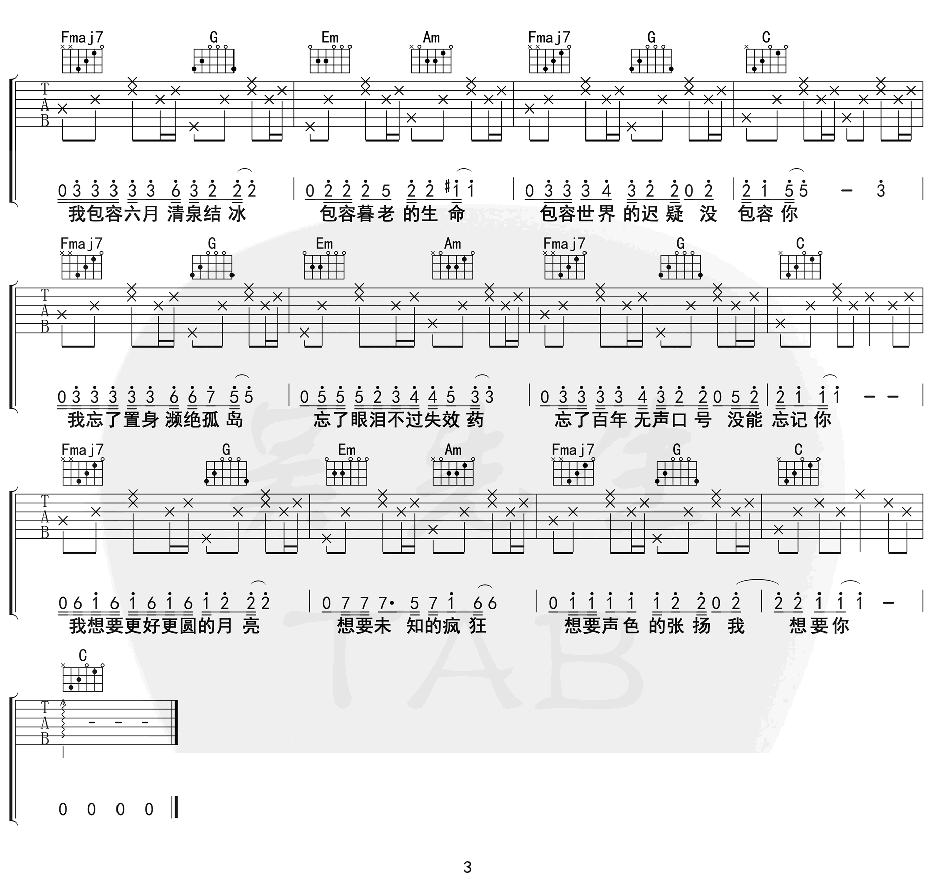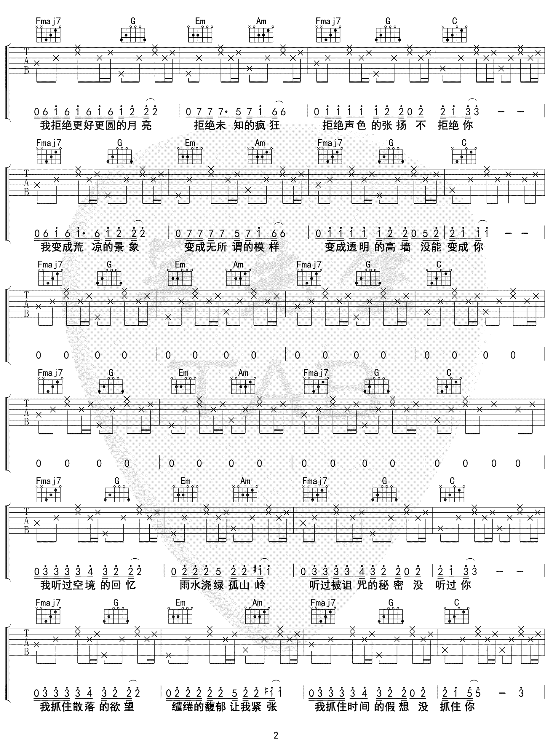 《陈粒《奇妙能力歌吉他谱》(C调)》内容来自于互联网,不能保证内容的准确性与完整性,仅供学习交流欣赏,请勿用于其它用途,内容版权归原作者及来源网站所有,如有侵犯到您的权益请来信告知,我们将及时删除。