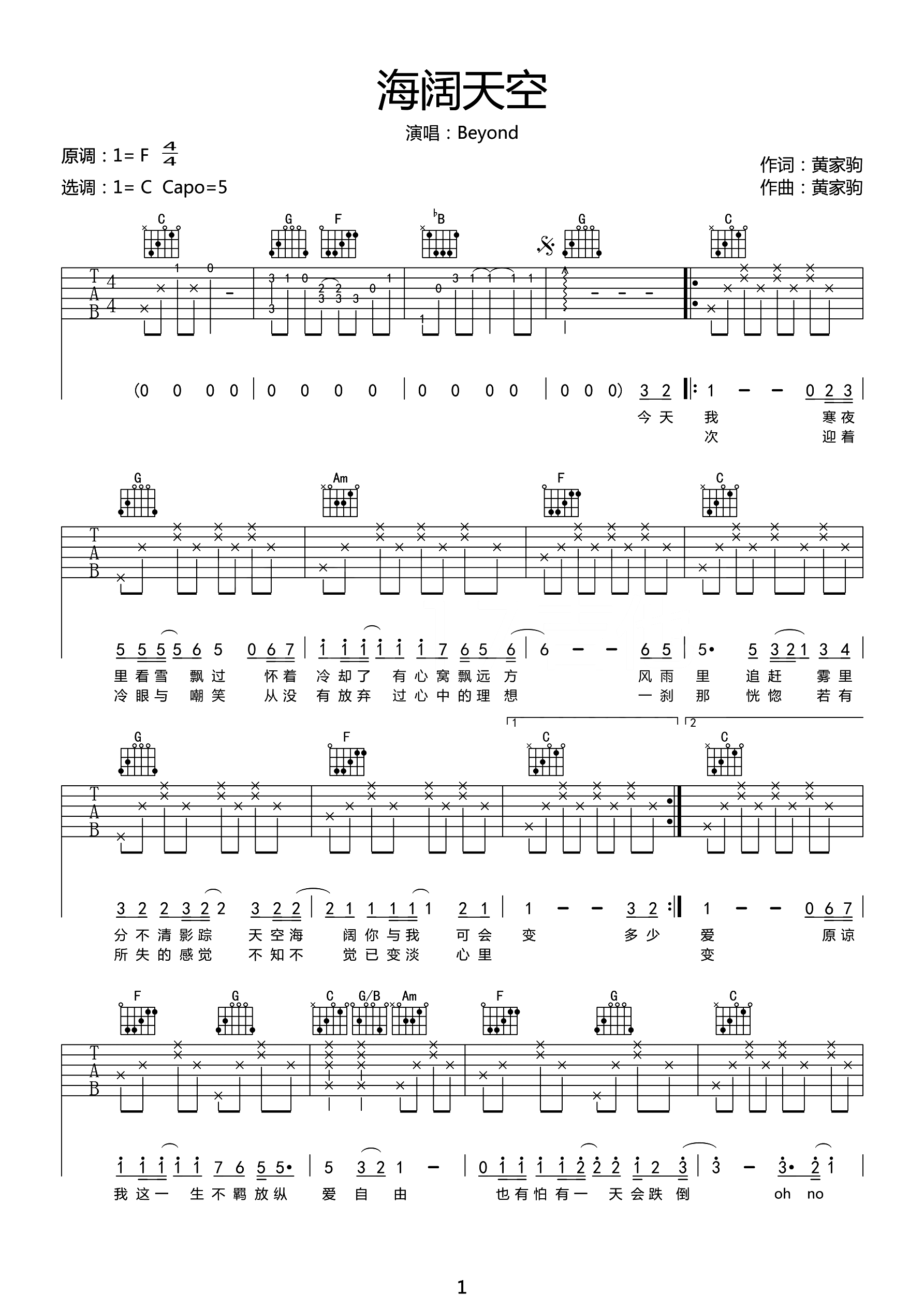 本文标题 《Beyond《海阔天空吉他谱》(F调)》,网址:https://www.21qupu.com/guitar/62728.html