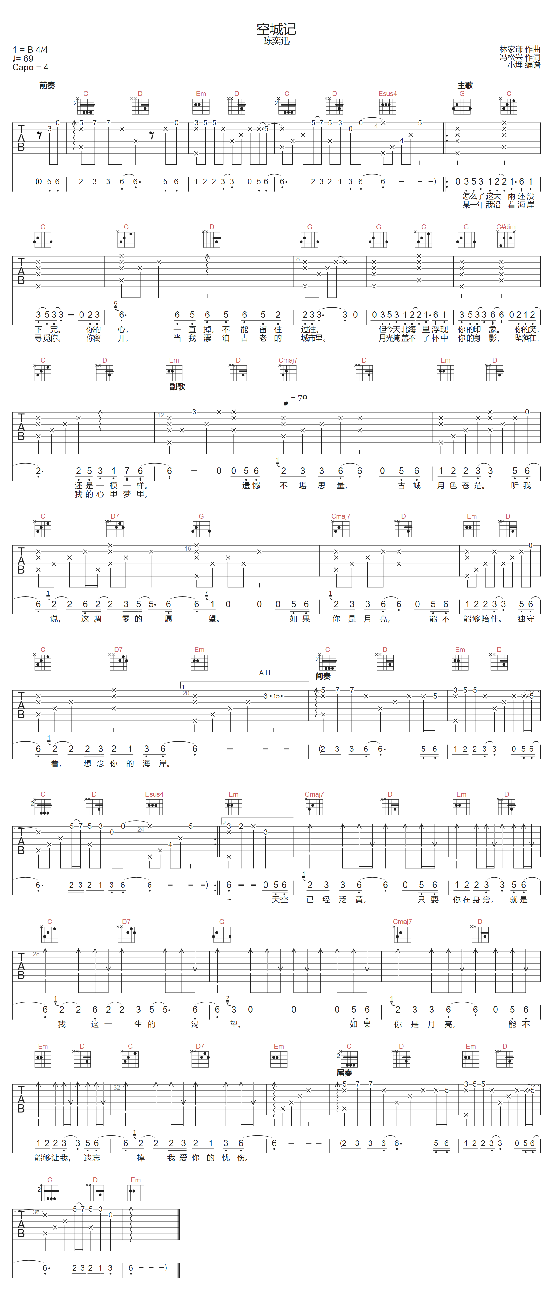 《陈奕迅《空城记吉他谱》(C调)》内容来自于互联网,不能保证内容的准确性与完整性,仅供学习交流欣赏,请勿用于其它用途,内容版权归原作者及来源网站所有,如有侵犯到您的权益请来信告知,我们将及时删除。