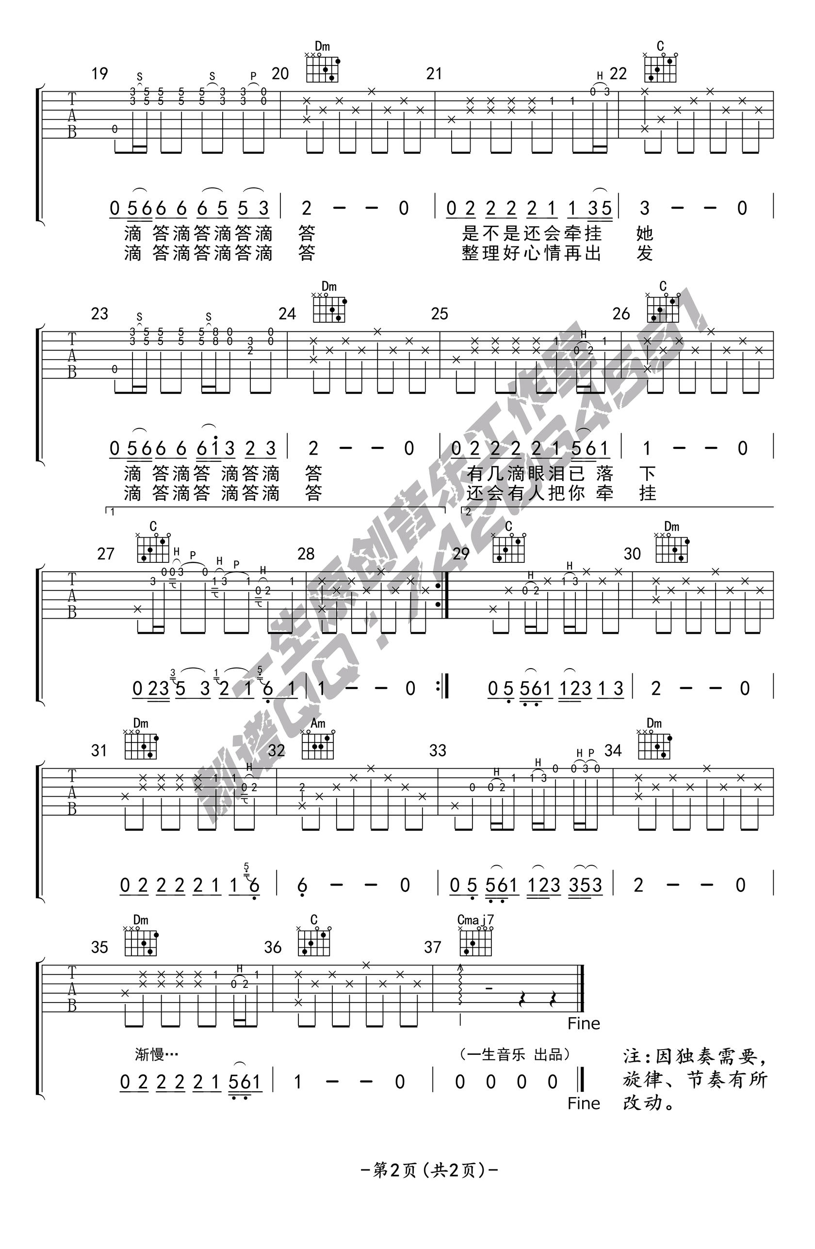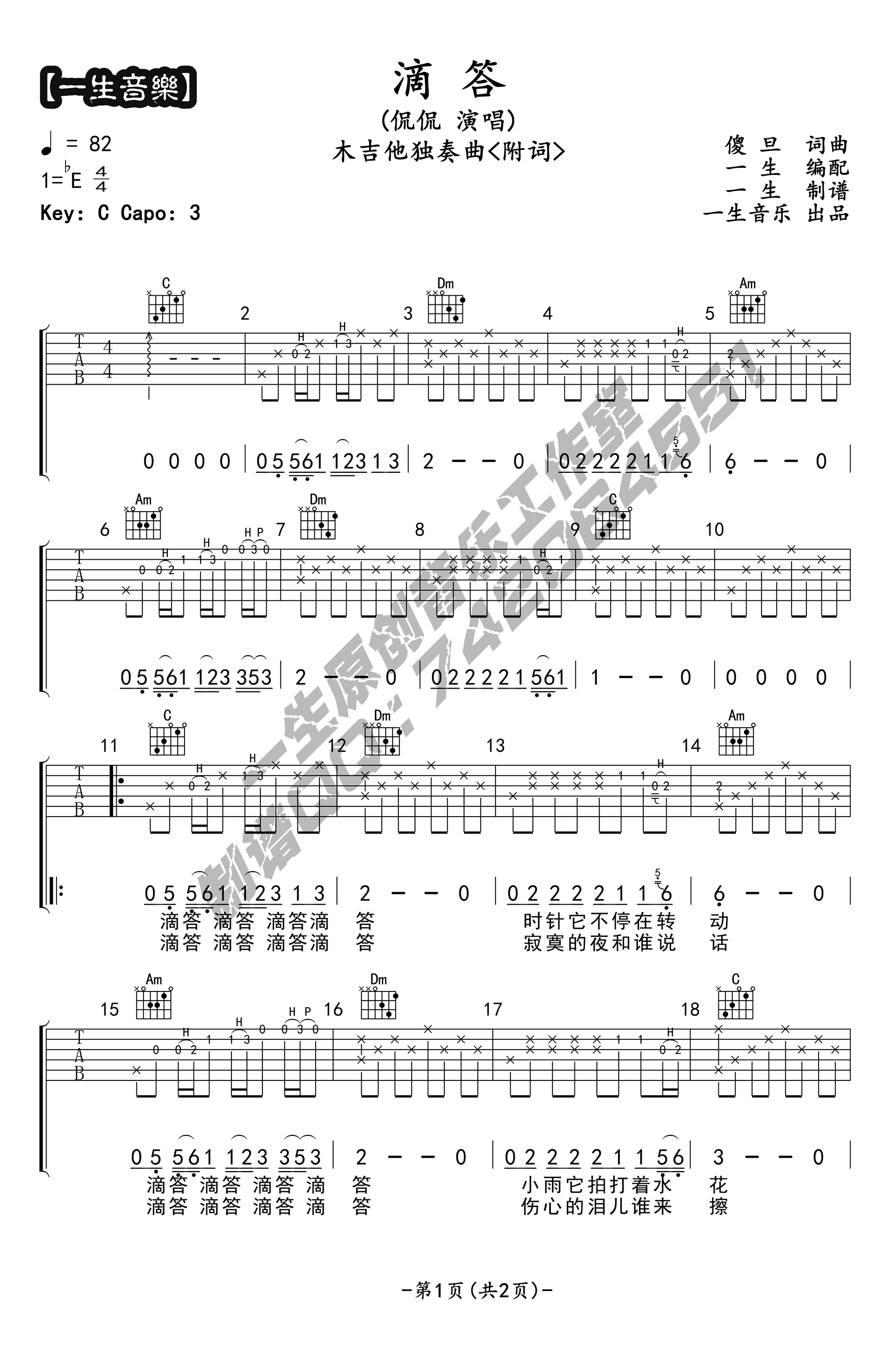 《侃侃《滴答吉他谱》(G调)》内容来自于互联网,不能保证内容的准确性与完整性,仅供学习交流欣赏,请勿用于其它用途,内容版权归原作者及来源网站所有,如有侵犯到您的权益请来信告知,我们将及时删除。