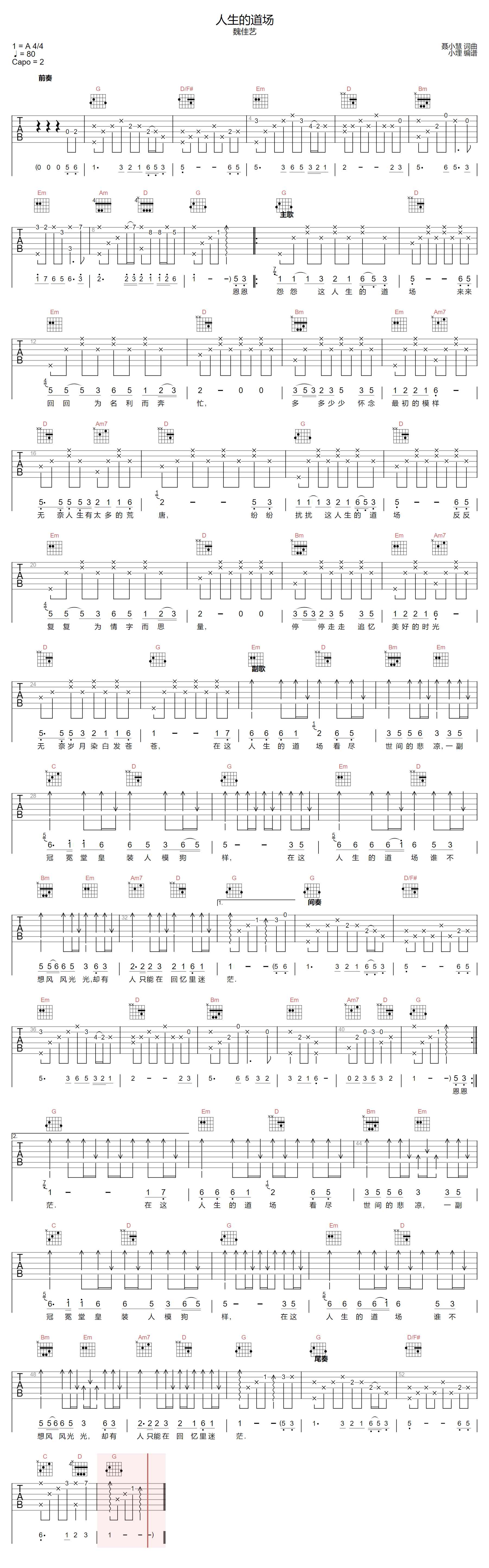 魏佳艺《人生的道场吉他谱》(G调)
