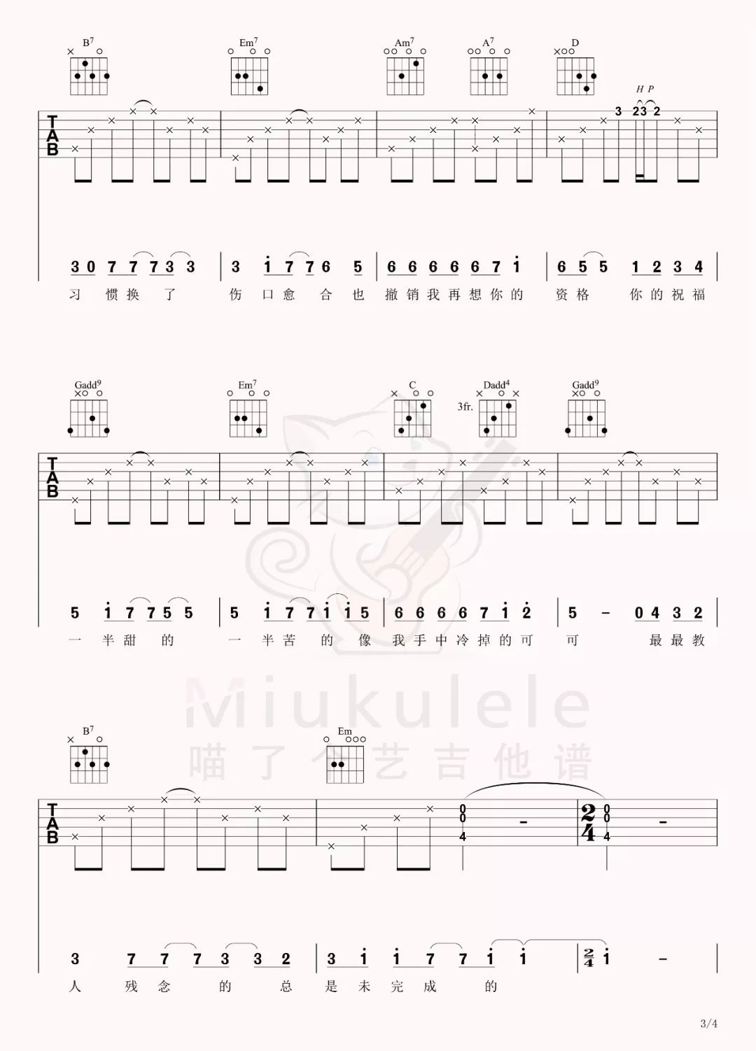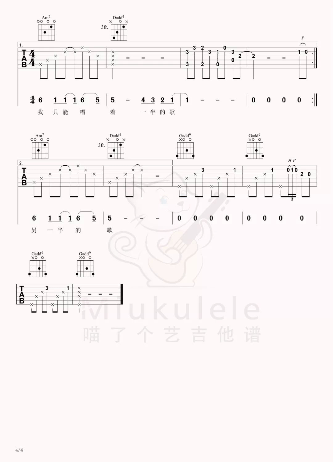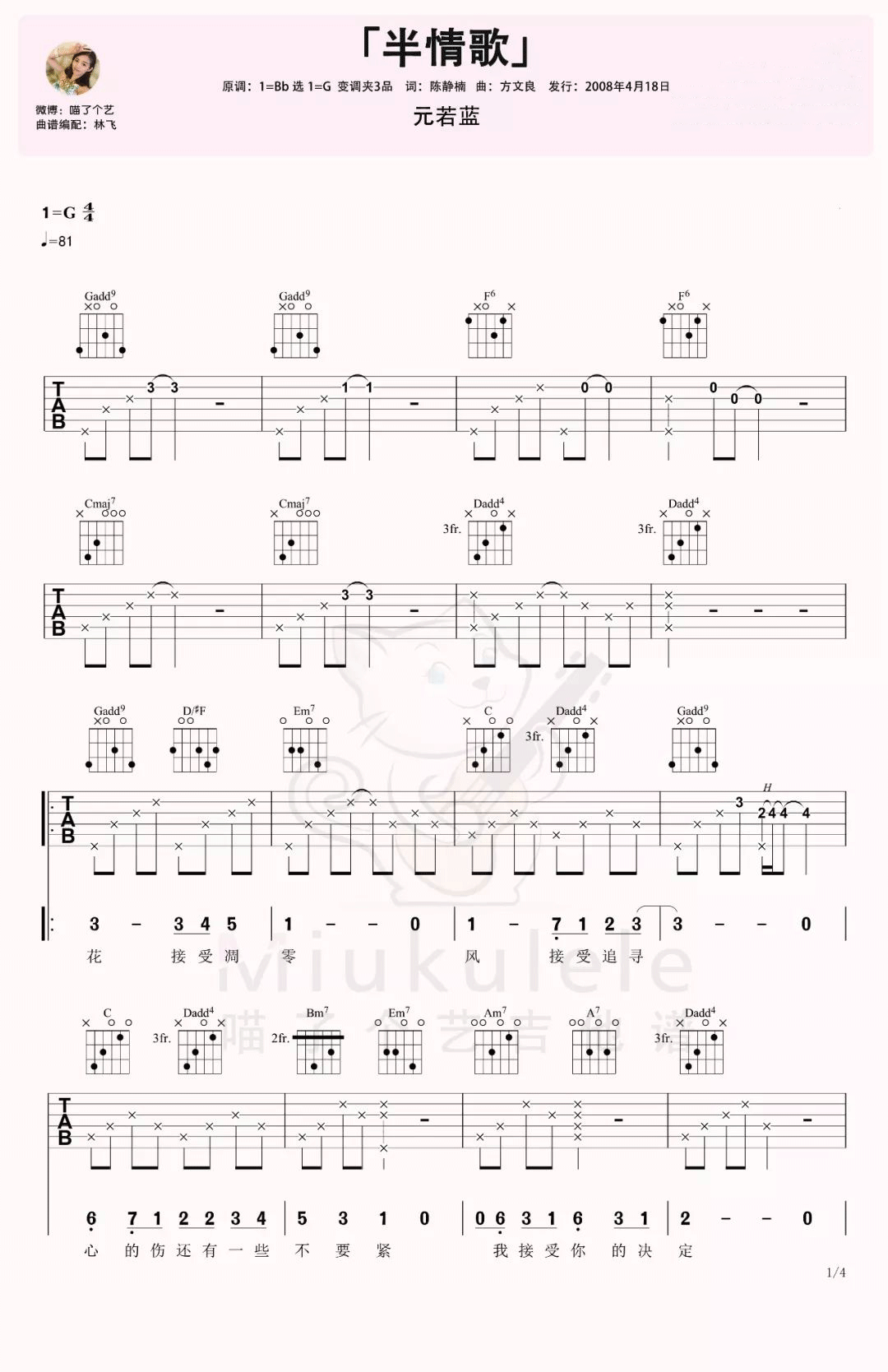 《元若蓝《半情歌吉他谱》(C调)》内容来自于互联网,不能保证内容的准确性与完整性,仅供学习交流欣赏,请勿用于其它用途,内容版权归原作者及来源网站所有,如有侵犯到您的权益请来信告知,我们将及时删除。