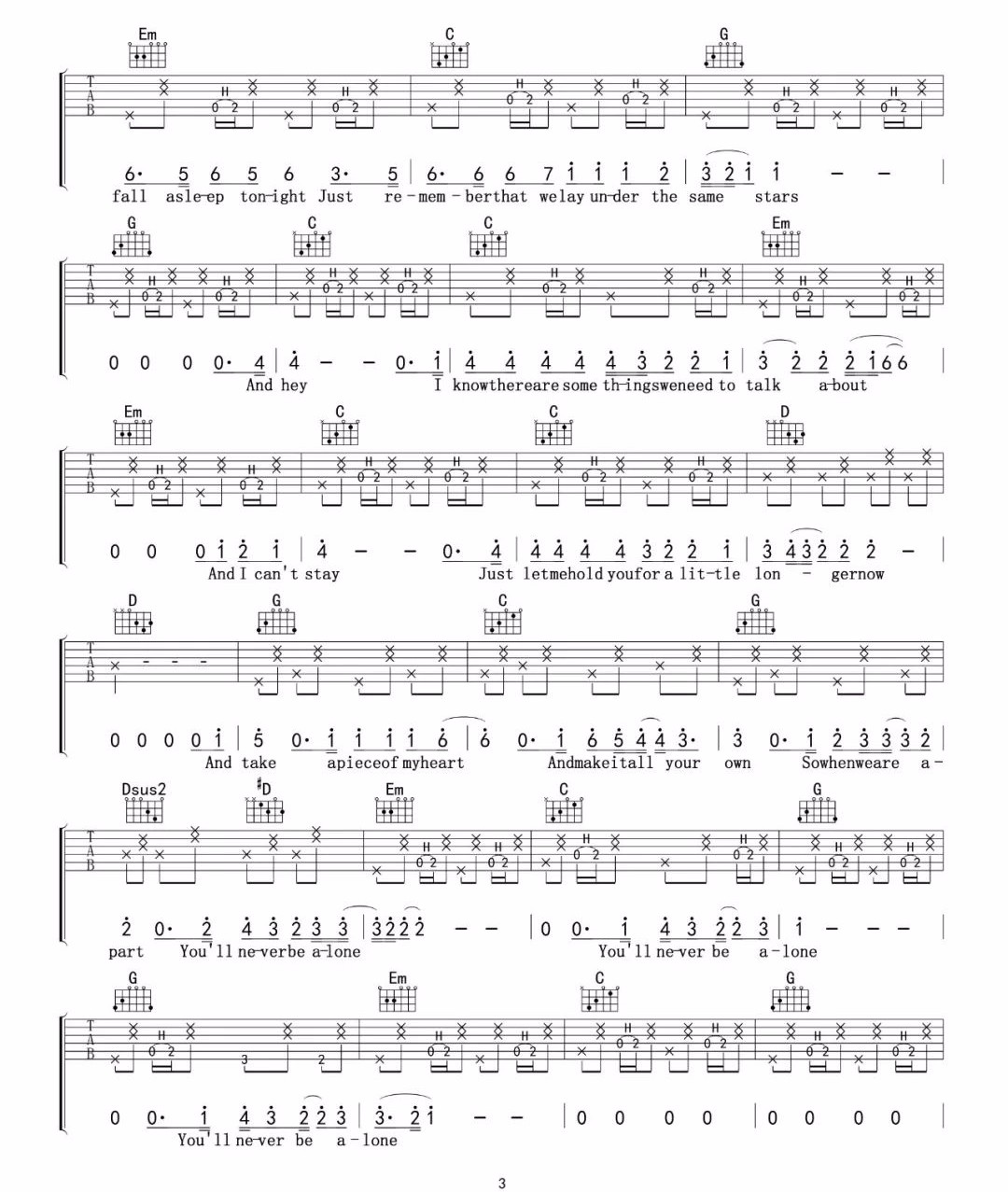 《Shawn Mendes《Never Be Alone吉他谱》(C调)》内容来自于互联网,不能保证内容的准确性与完整性,仅供学习交流欣赏,请勿用于其它用途,内容版权归原作者及来源网站所有,如有侵犯到您的权益请来信告知,我们将及时删除。