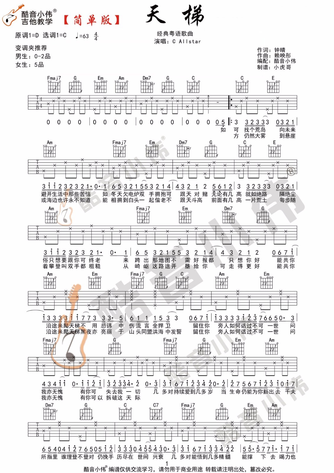 《C Allstar《天梯吉他谱》(G调)》内容来自于互联网,不能保证内容的准确性与完整性,仅供学习交流欣赏,请勿用于其它用途,内容版权归原作者及来源网站所有,如有侵犯到您的权益请来信告知,我们将及时删除。