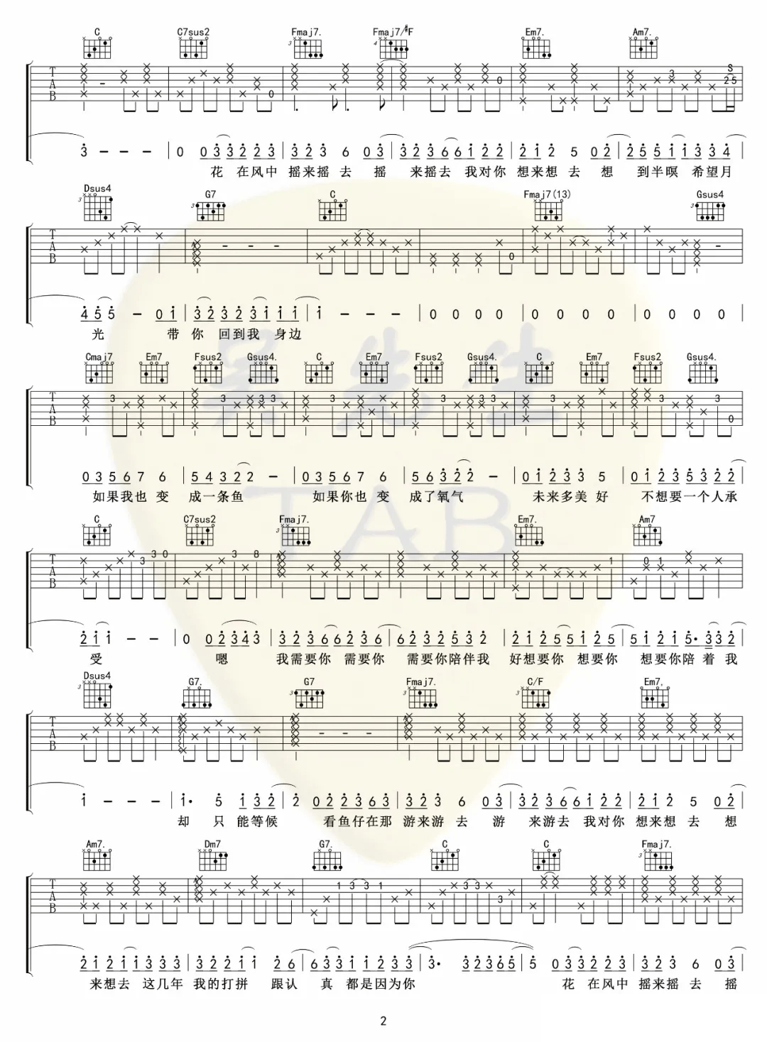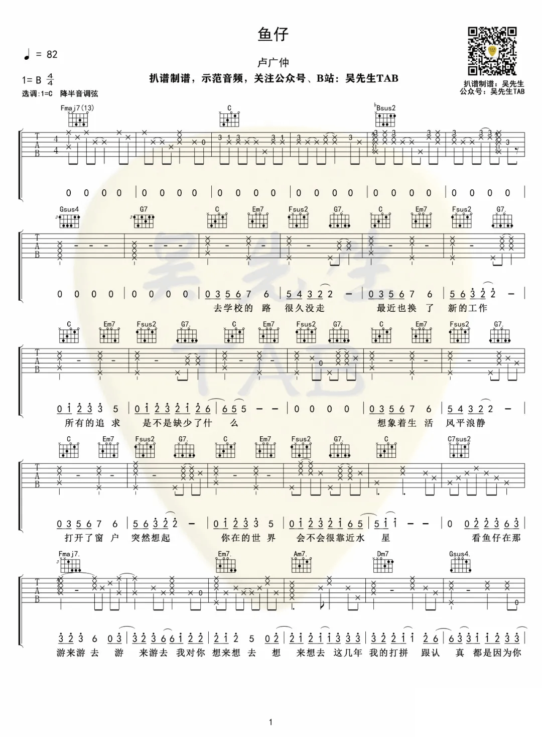 《卢广仲《鱼仔吉他谱》(C调)》内容来自于互联网,不能保证内容的准确性与完整性,仅供学习交流欣赏,请勿用于其它用途,内容版权归原作者及来源网站所有,如有侵犯到您的权益请来信告知,我们将及时删除。