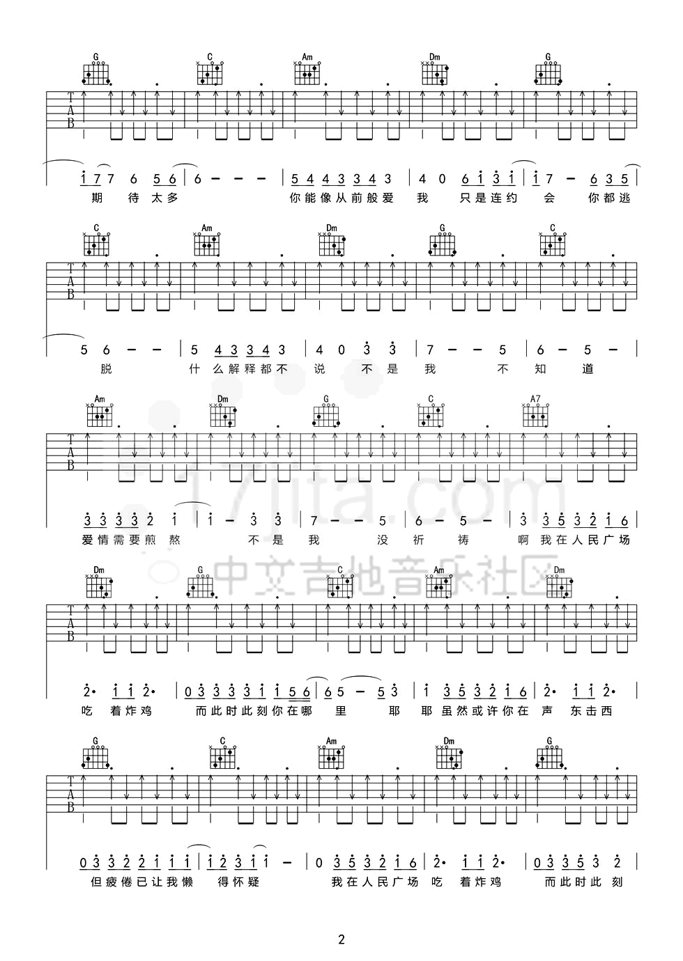 《阿肆/赵大格《我在人民广场吃炸鸡吉他谱》(F调)》内容来自于互联网,不能保证内容的准确性与完整性,仅供学习交流欣赏,请勿用于其它用途,内容版权归原作者及来源网站所有,如有侵犯到您的权益请来信告知,我们将及时删除。