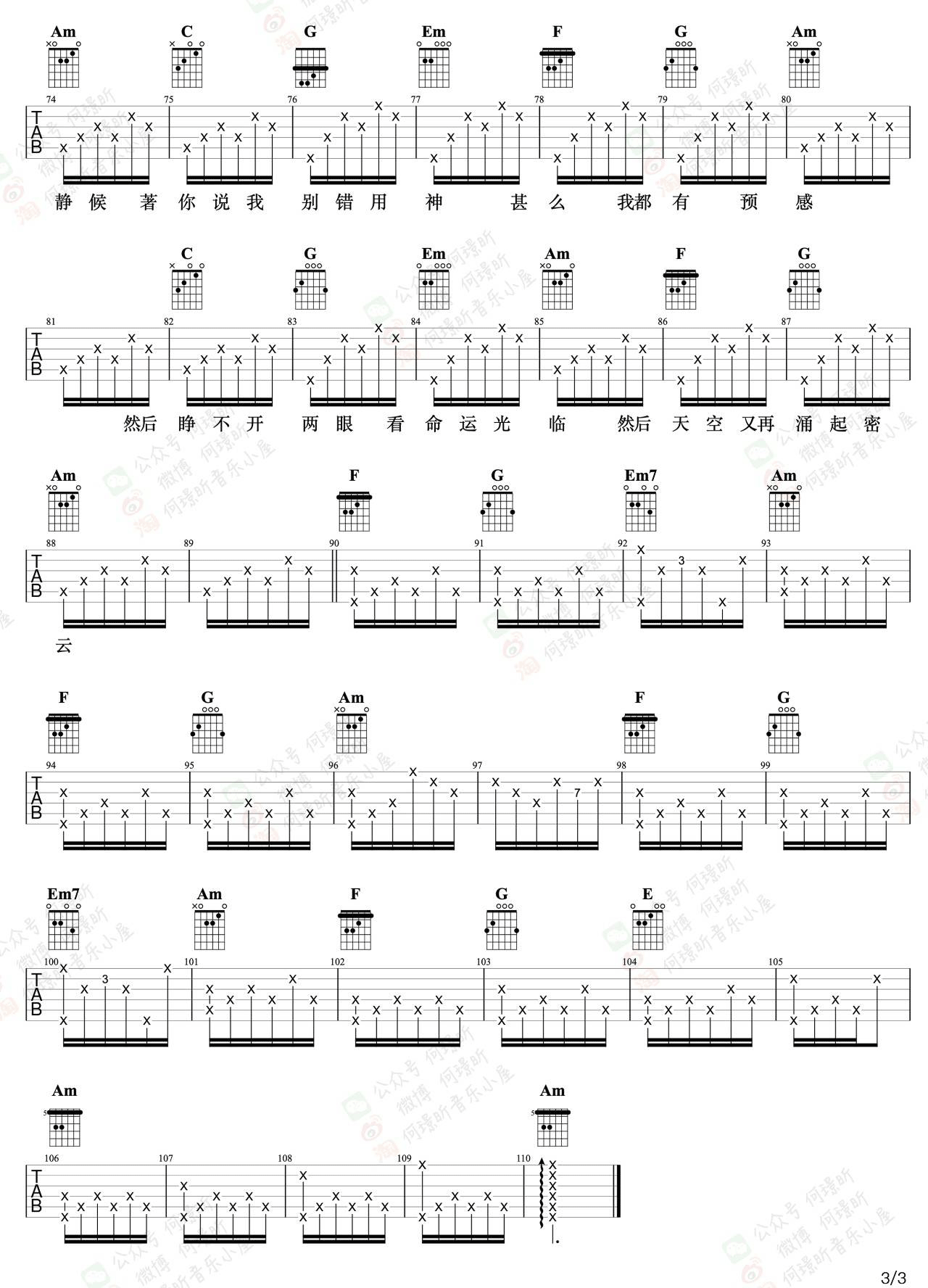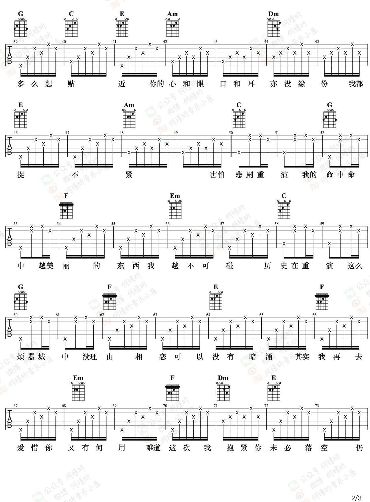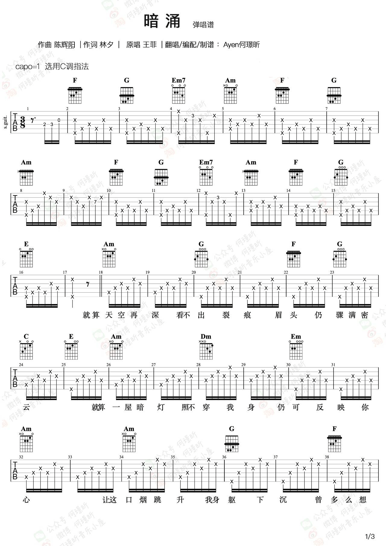 《王菲《暗涌吉他谱》(C调)》内容来自于互联网,不能保证内容的准确性与完整性,仅供学习交流欣赏,请勿用于其它用途,内容版权归原作者及来源网站所有,如有侵犯到您的权益请来信告知,我们将及时删除。