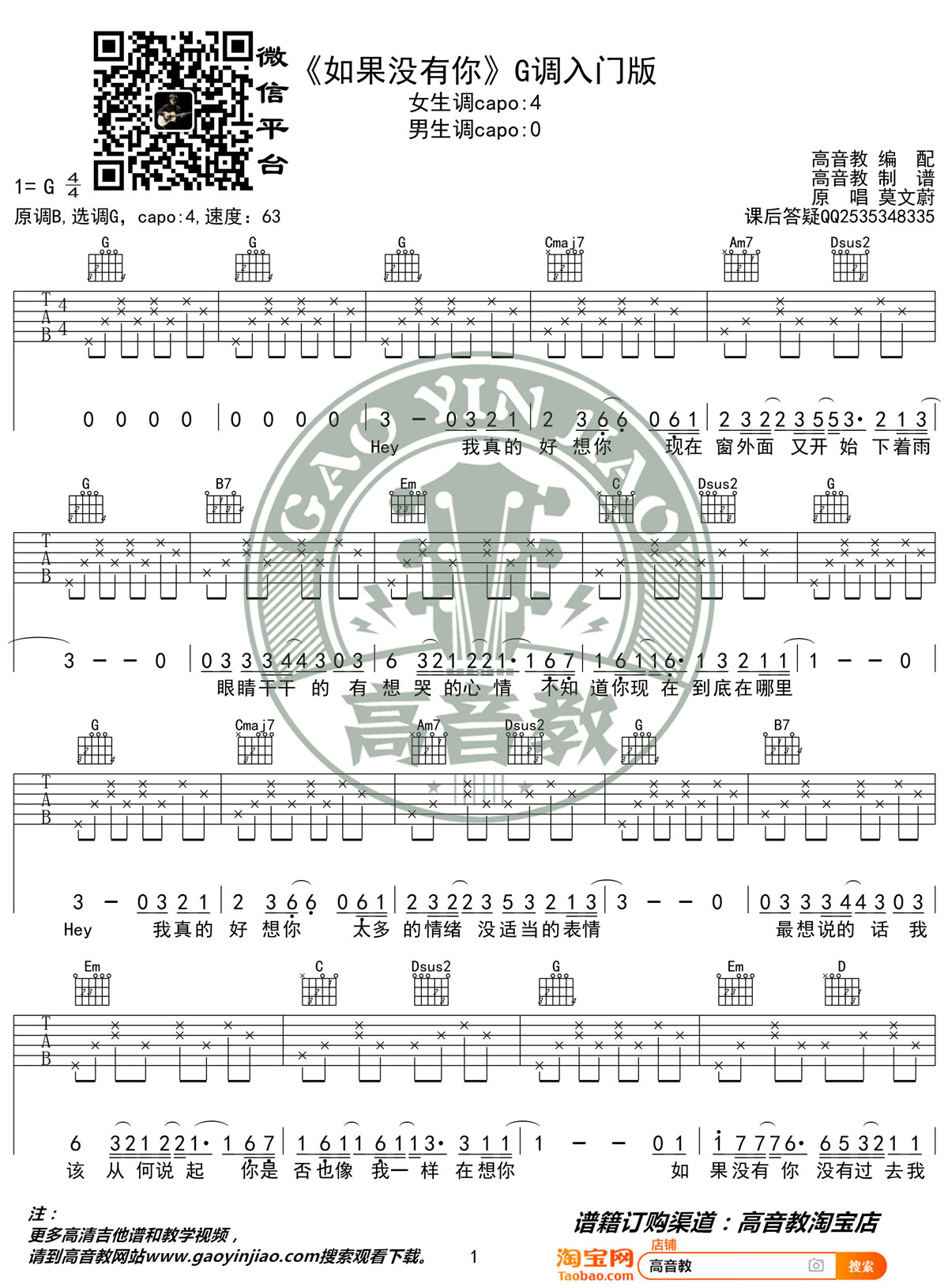 《莫文蔚《如果没有你吉他谱》(G调)》内容来自于互联网,不能保证内容的准确性与完整性,仅供学习交流欣赏,请勿用于其它用途,内容版权归原作者及来源网站所有,如有侵犯到您的权益请来信告知,我们将及时删除。