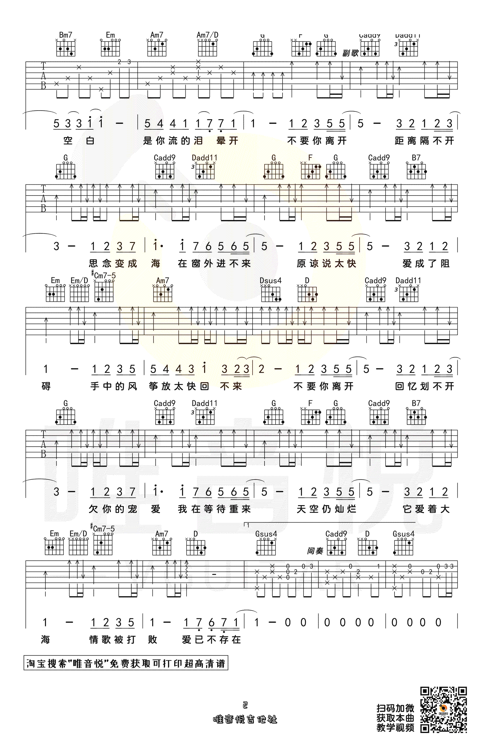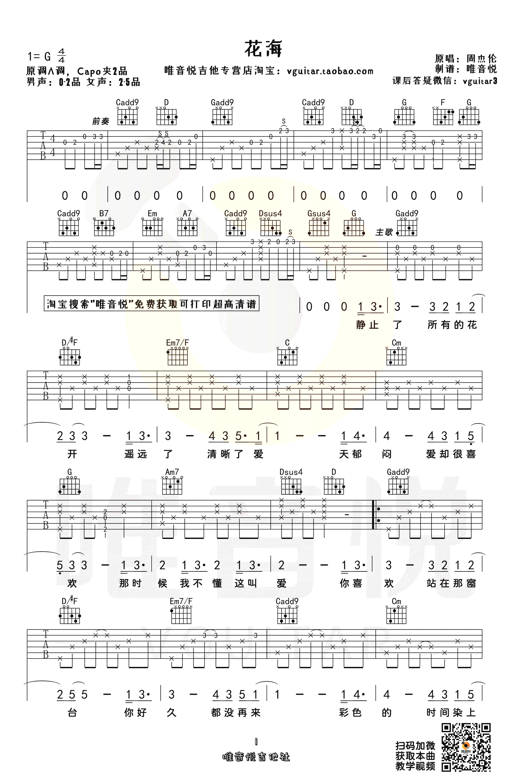 《周杰伦《花海吉他谱》(C调)》内容来自于互联网,不能保证内容的准确性与完整性,仅供学习交流欣赏,请勿用于其它用途,内容版权归原作者及来源网站所有,如有侵犯到您的权益请来信告知,我们将及时删除。