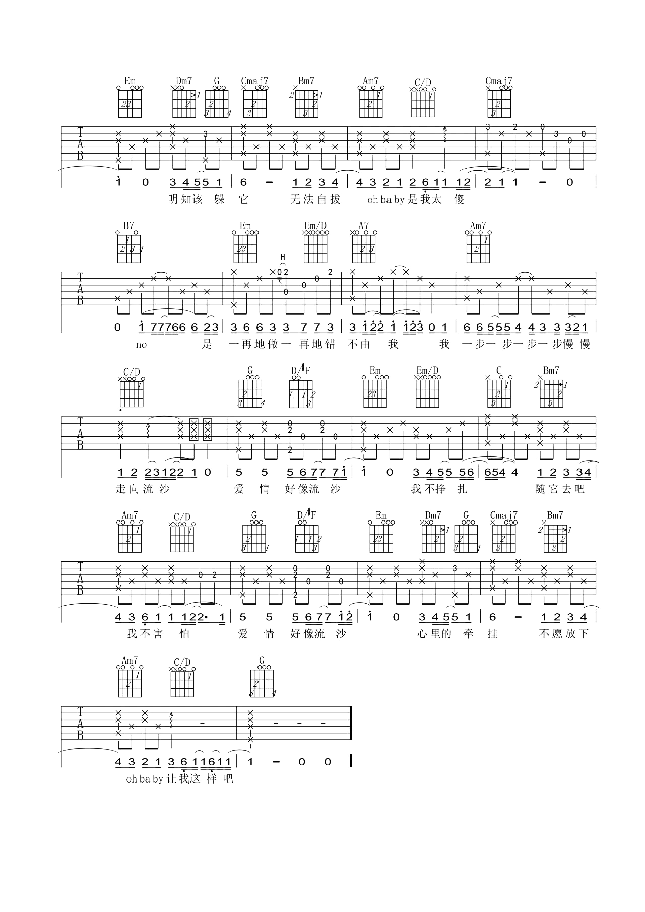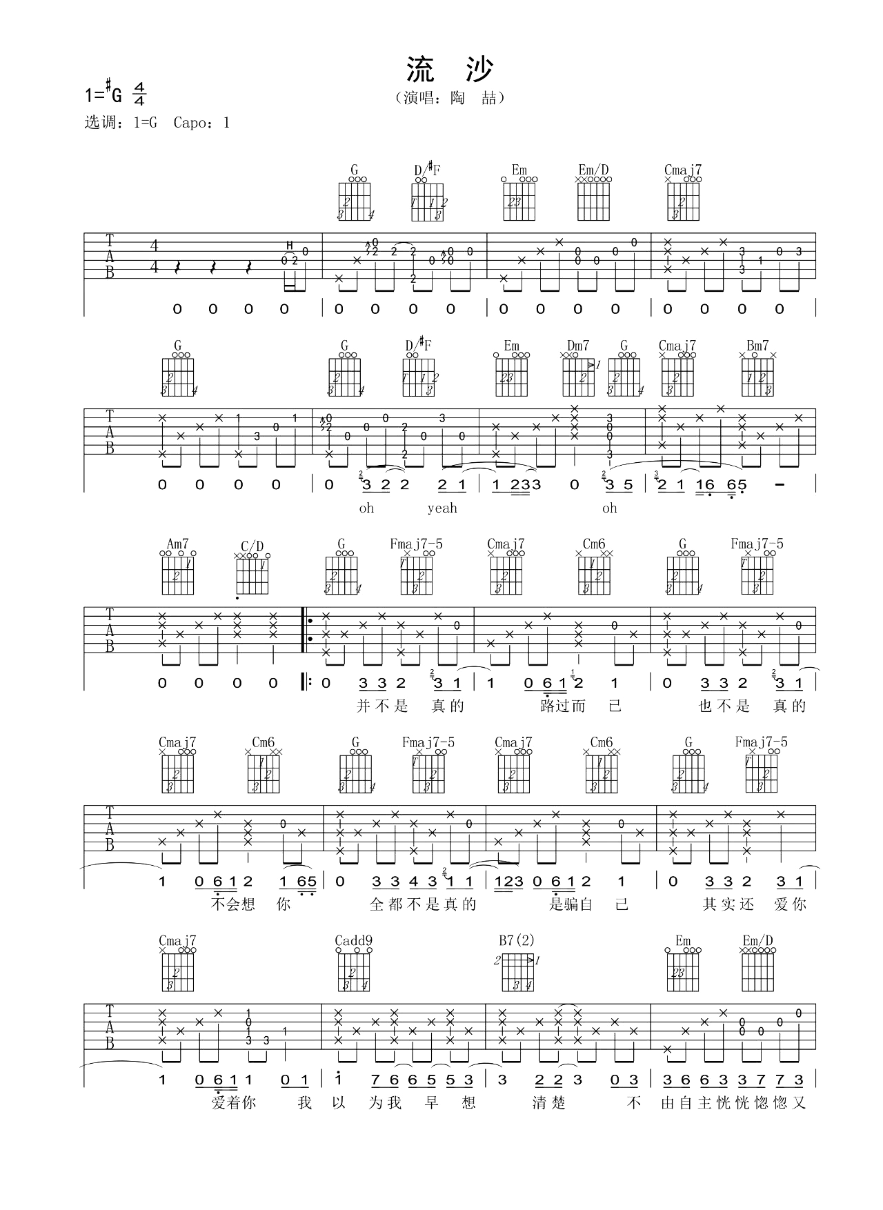 《陶喆《流沙吉他谱》(C调)》内容来自于互联网,不能保证内容的准确性与完整性,仅供学习交流欣赏,请勿用于其它用途,内容版权归原作者及来源网站所有,如有侵犯到您的权益请来信告知,我们将及时删除。