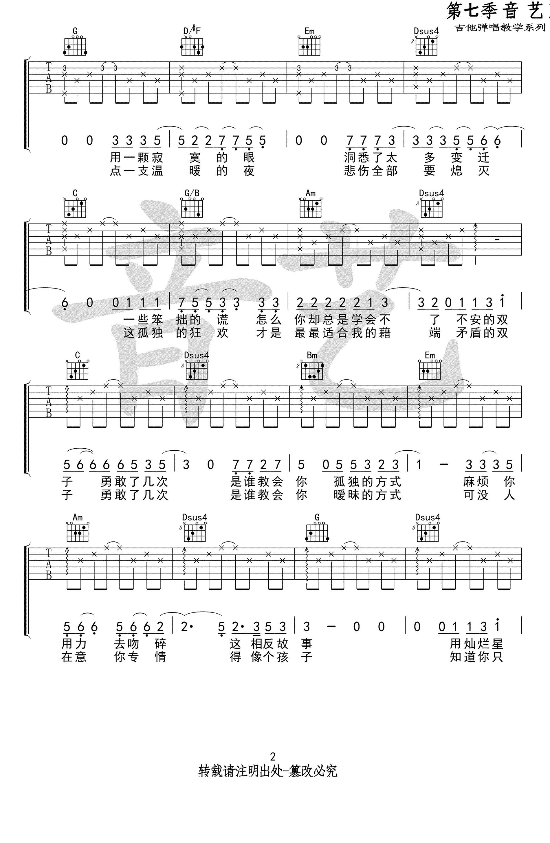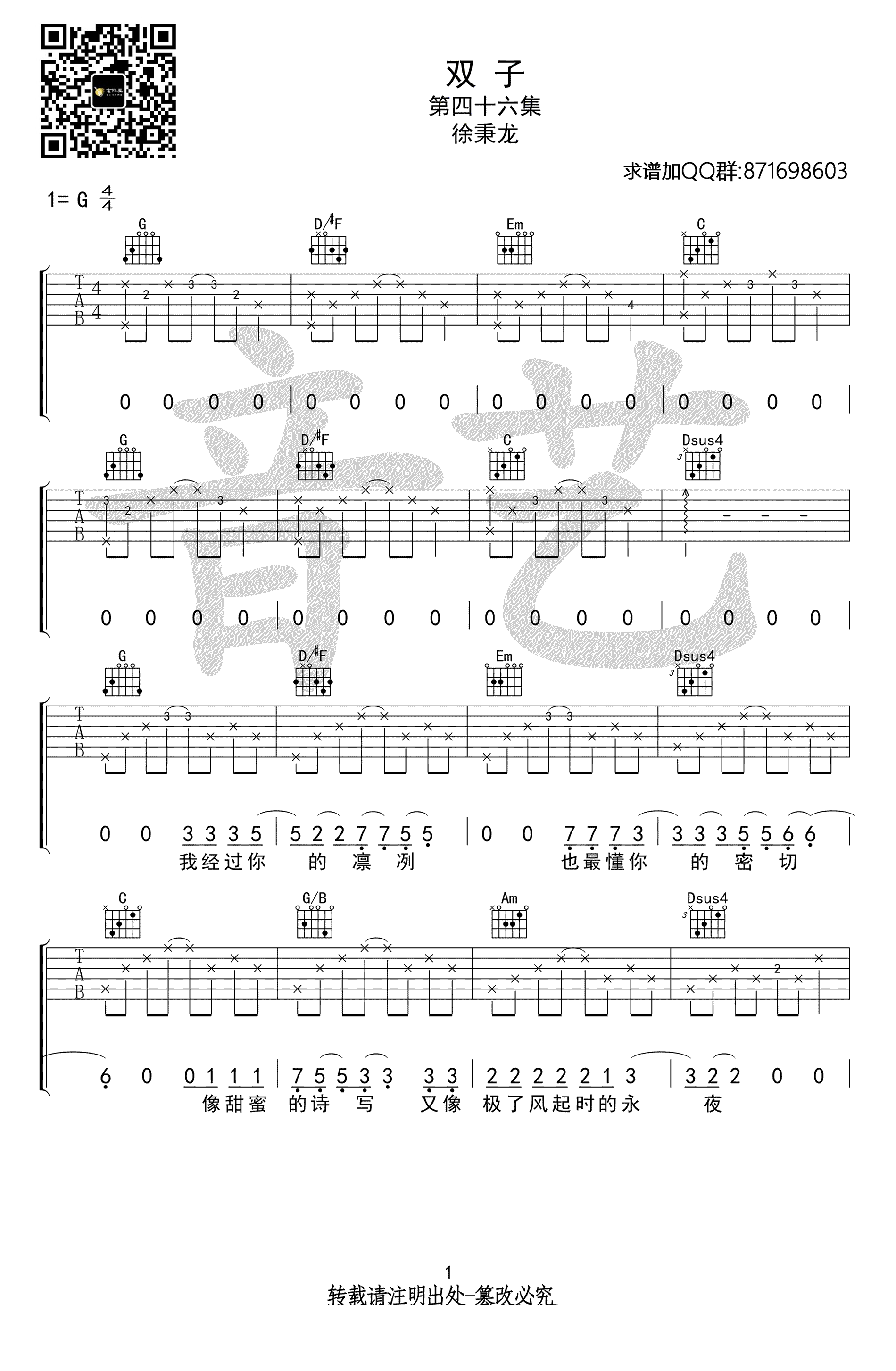 《徐秉龙《双子吉他谱》(C调)》内容来自于互联网,不能保证内容的准确性与完整性,仅供学习交流欣赏,请勿用于其它用途,内容版权归原作者及来源网站所有,如有侵犯到您的权益请来信告知,我们将及时删除。