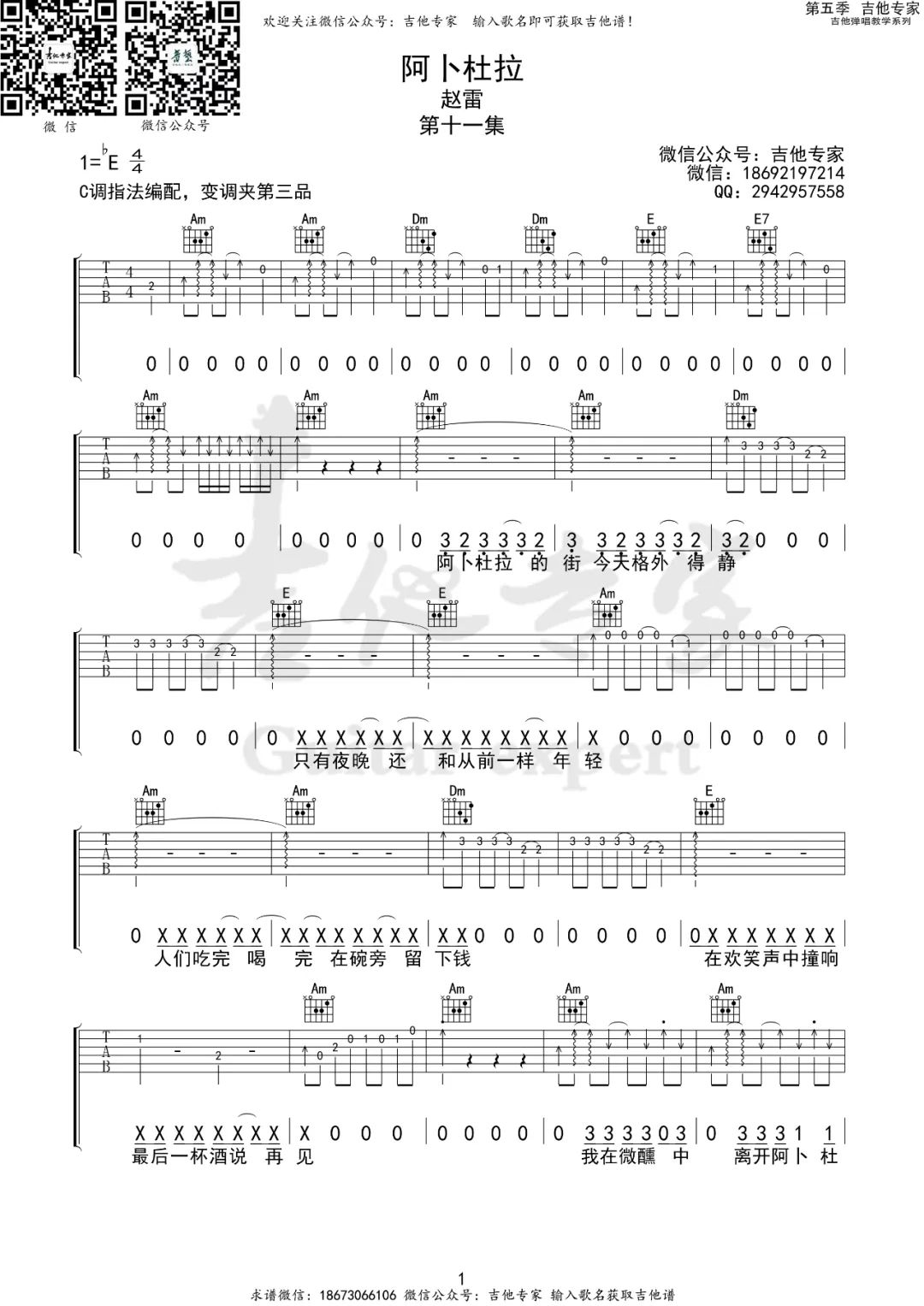 《赵雷《阿卜杜拉吉他谱》(G调)》内容来自于互联网,不能保证内容的准确性与完整性,仅供学习交流欣赏,请勿用于其它用途,内容版权归原作者及来源网站所有,如有侵犯到您的权益请来信告知,我们将及时删除。