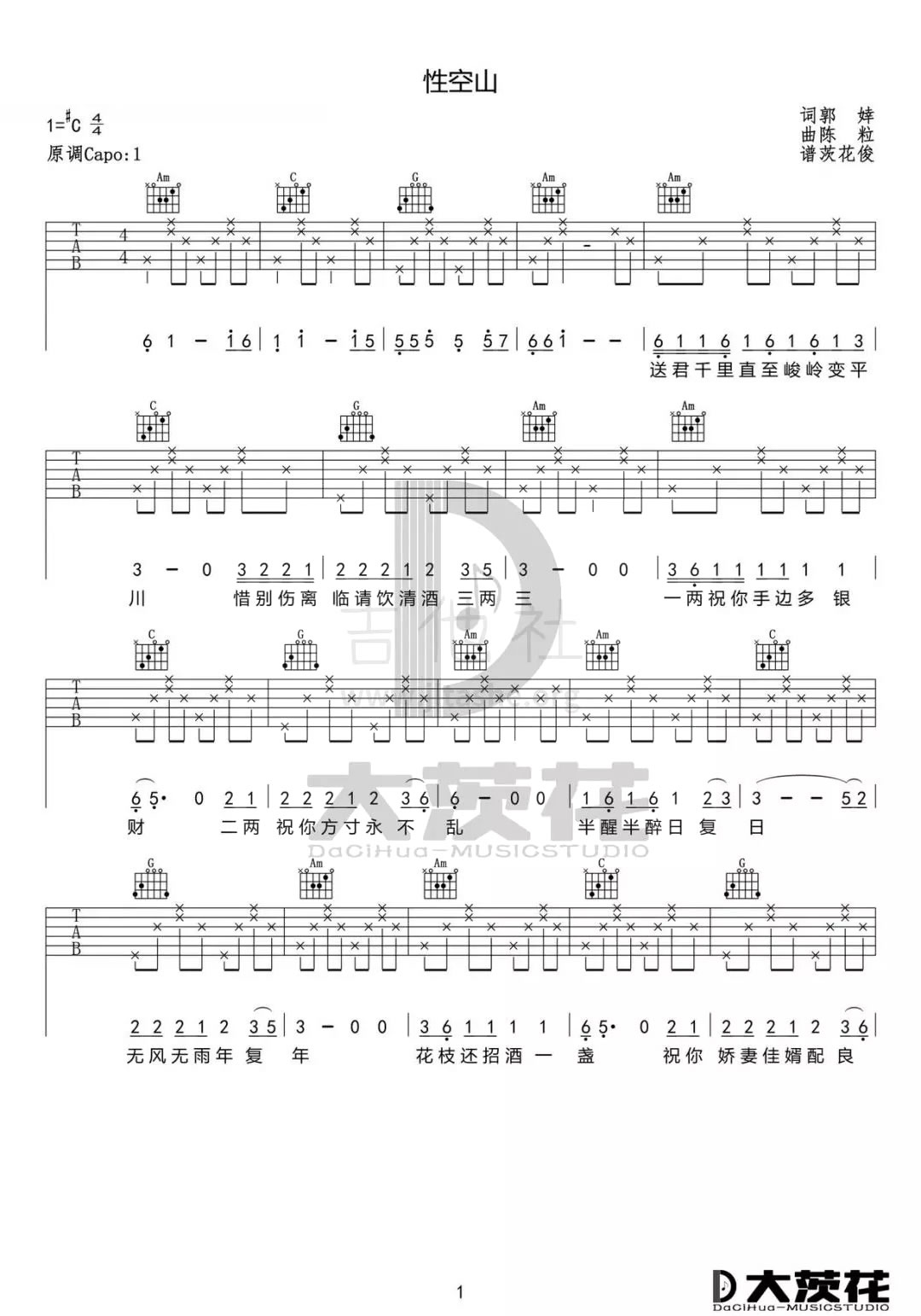 《陈粒《性空山吉他谱》(C调)》内容来自于互联网,不能保证内容的准确性与完整性,仅供学习交流欣赏,请勿用于其它用途,内容版权归原作者及来源网站所有,如有侵犯到您的权益请来信告知,我们将及时删除。