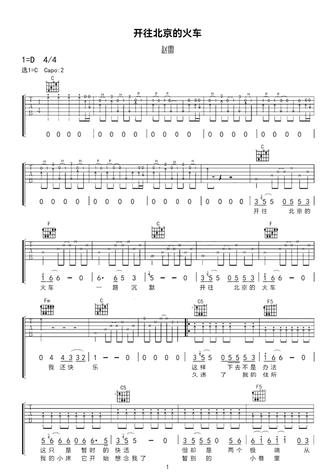 《赵雷《开往北京的火车吉他谱》(G调)》内容来自于互联网,不能保证内容的准确性与完整性,仅供学习交流欣赏,请勿用于其它用途,内容版权归原作者及来源网站所有,如有侵犯到您的权益请来信告知,我们将及时删除。