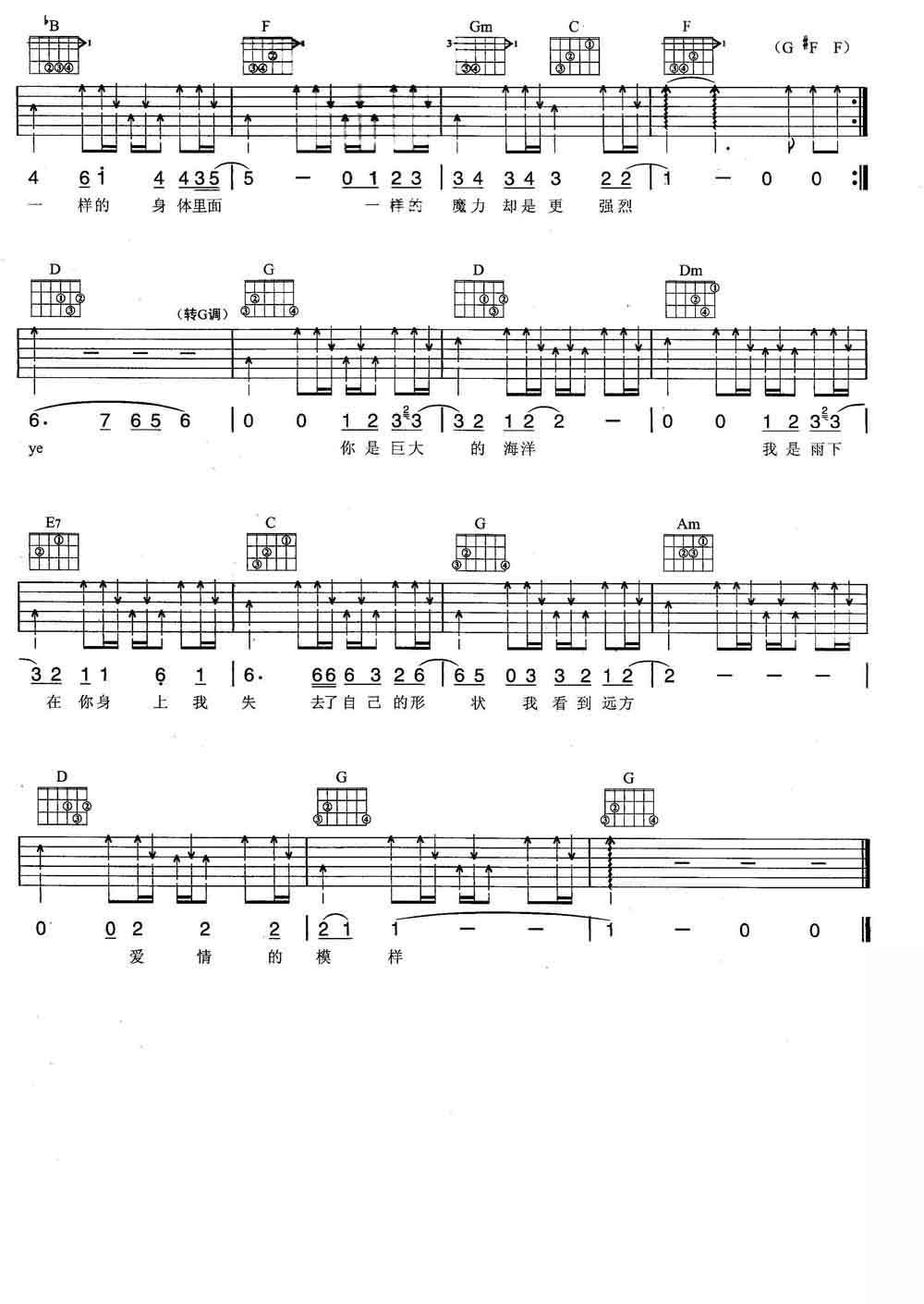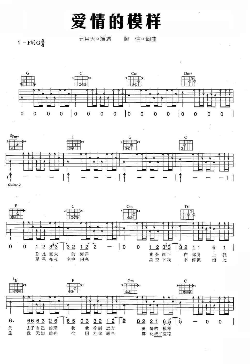 《五月天《爱情的模样吉他谱》(G调)》内容来自于互联网,不能保证内容的准确性与完整性,仅供学习交流欣赏,请勿用于其它用途,内容版权归原作者及来源网站所有,如有侵犯到您的权益请来信告知,我们将及时删除。