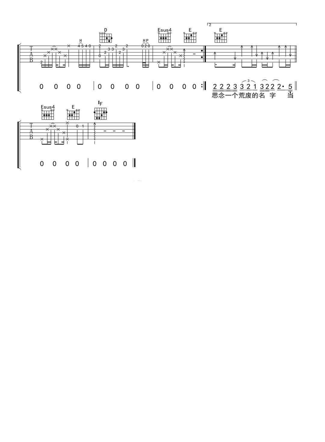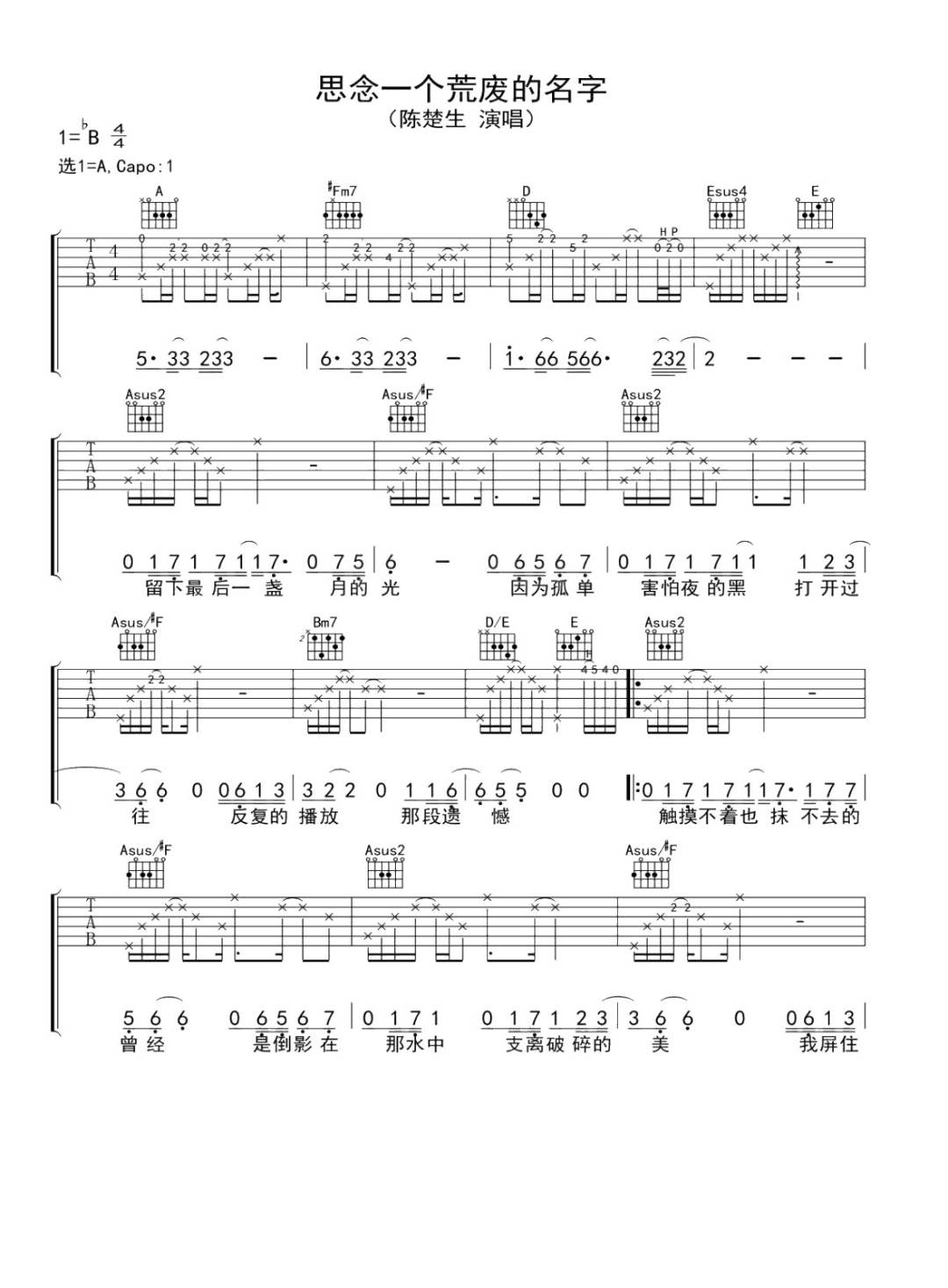 《陈楚生《思念一个荒废的名字吉他谱》(E调)》内容来自于互联网,不能保证内容的准确性与完整性,仅供学习交流欣赏,请勿用于其它用途,内容版权归原作者及来源网站所有,如有侵犯到您的权益请来信告知,我们将及时删除。