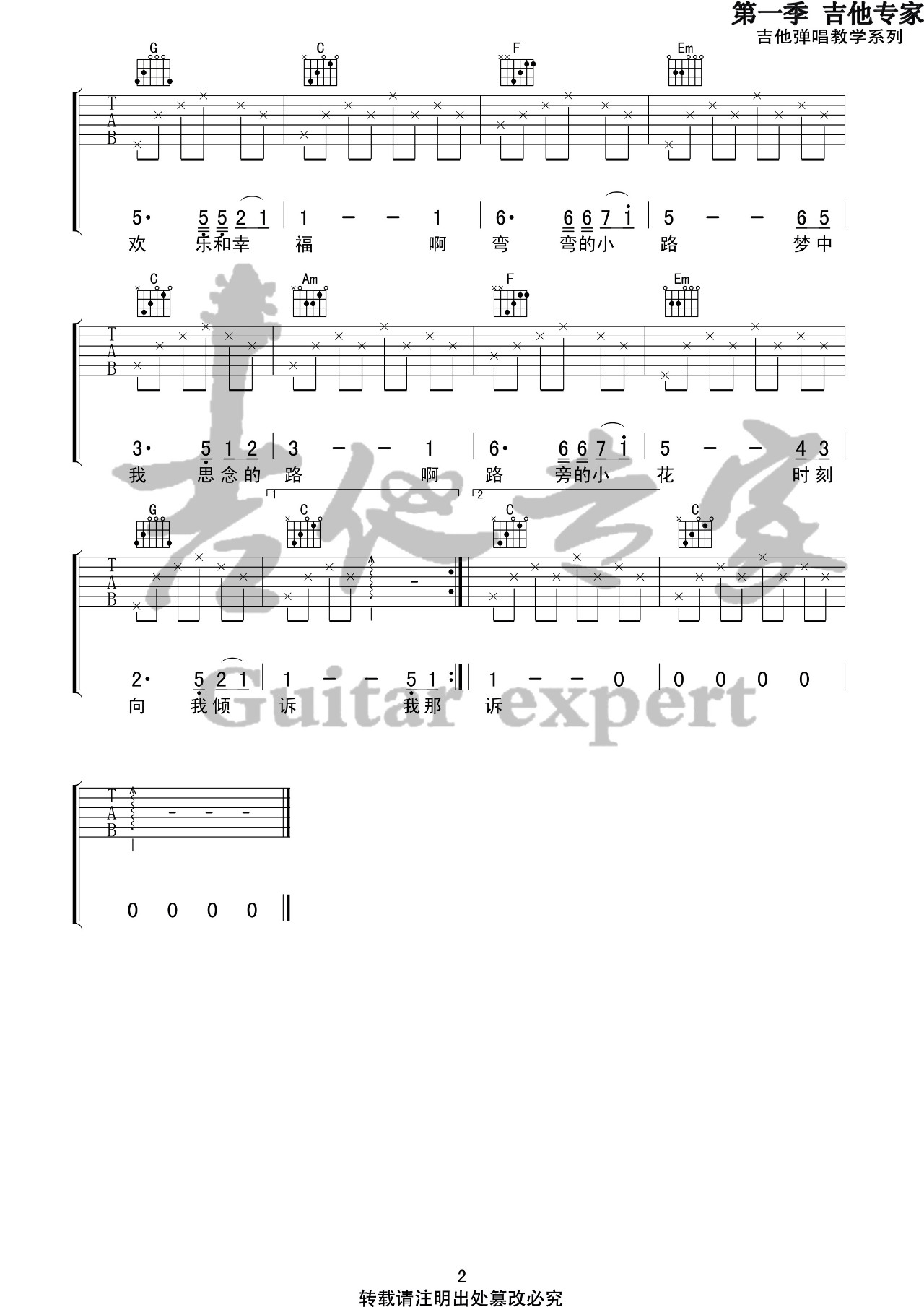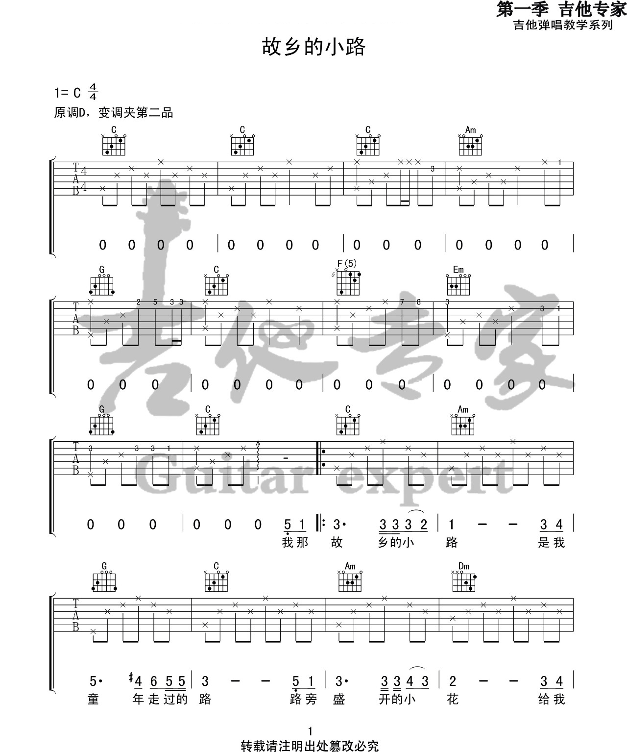 《民歌《故乡的小路吉他谱》(G调)》内容来自于互联网,不能保证内容的准确性与完整性,仅供学习交流欣赏,请勿用于其它用途,内容版权归原作者及来源网站所有,如有侵犯到您的权益请来信告知,我们将及时删除。