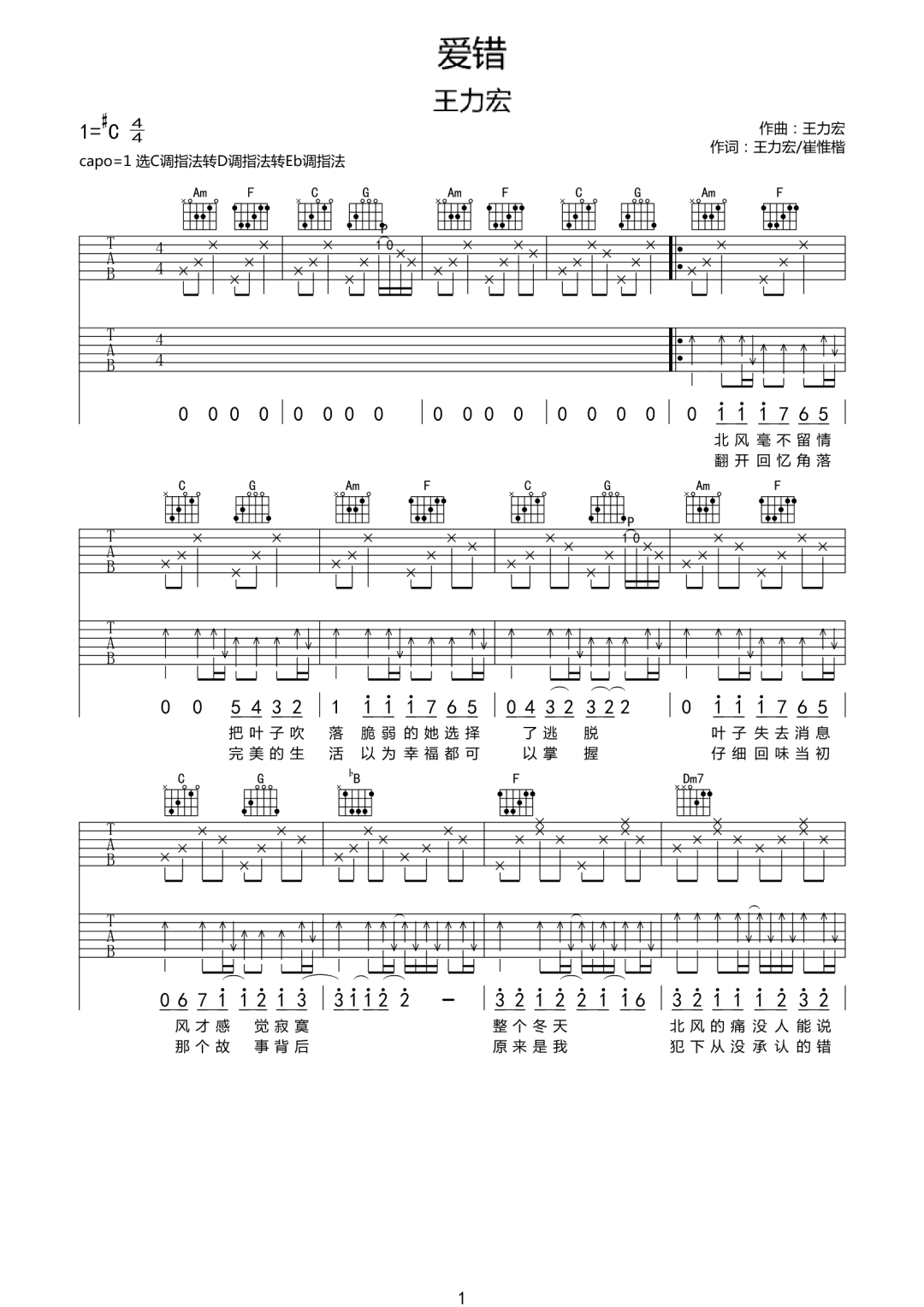 爱错王力宏演唱G调。此版本的曲谱来源于网络搜集,版权归原作者所有。歌曲,这里根据原版进行时夹变调夹2品回到这首歌前奏间奏及尾奏部分有一定难度,其他部分还好,难度不是太大。