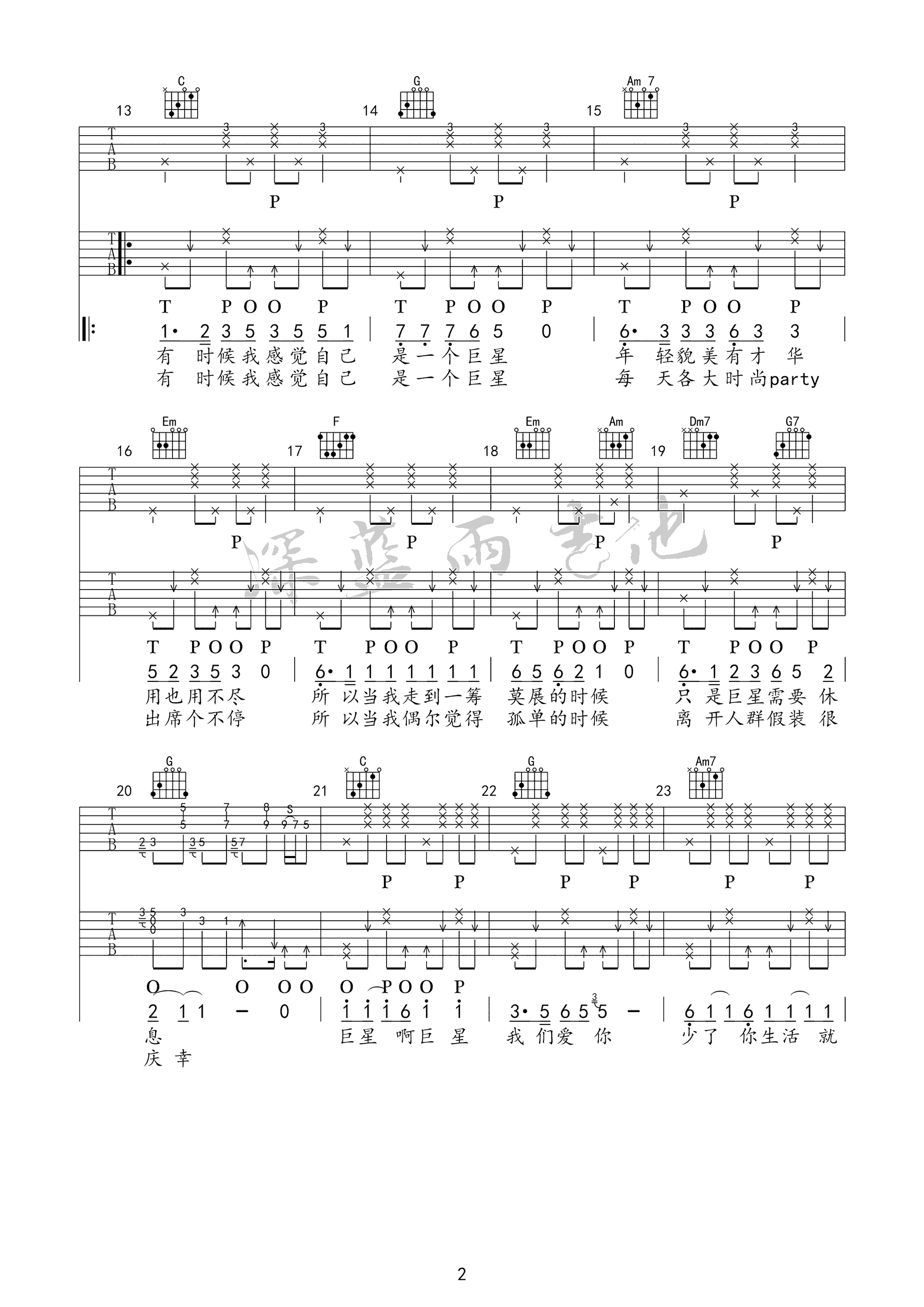 《毛不易《感觉自己是巨星吉他谱》(C调)》内容来自于互联网,不能保证内容的准确性与完整性,仅供学习交流欣赏,请勿用于其它用途,内容版权归原作者及来源网站所有,如有侵犯到您的权益请来信告知,我们将及时删除。