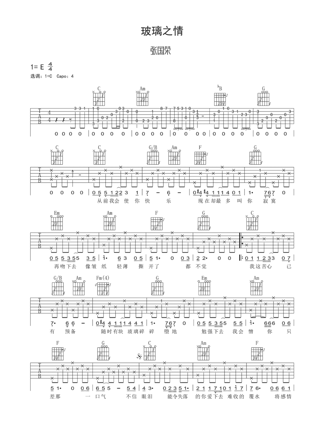 《张国荣《玻璃之情吉他谱》(G调)》内容来自于互联网,不能保证内容的准确性与完整性,仅供学习交流欣赏,请勿用于其它用途,内容版权归原作者及来源网站所有,如有侵犯到您的权益请来信告知,我们将及时删除。