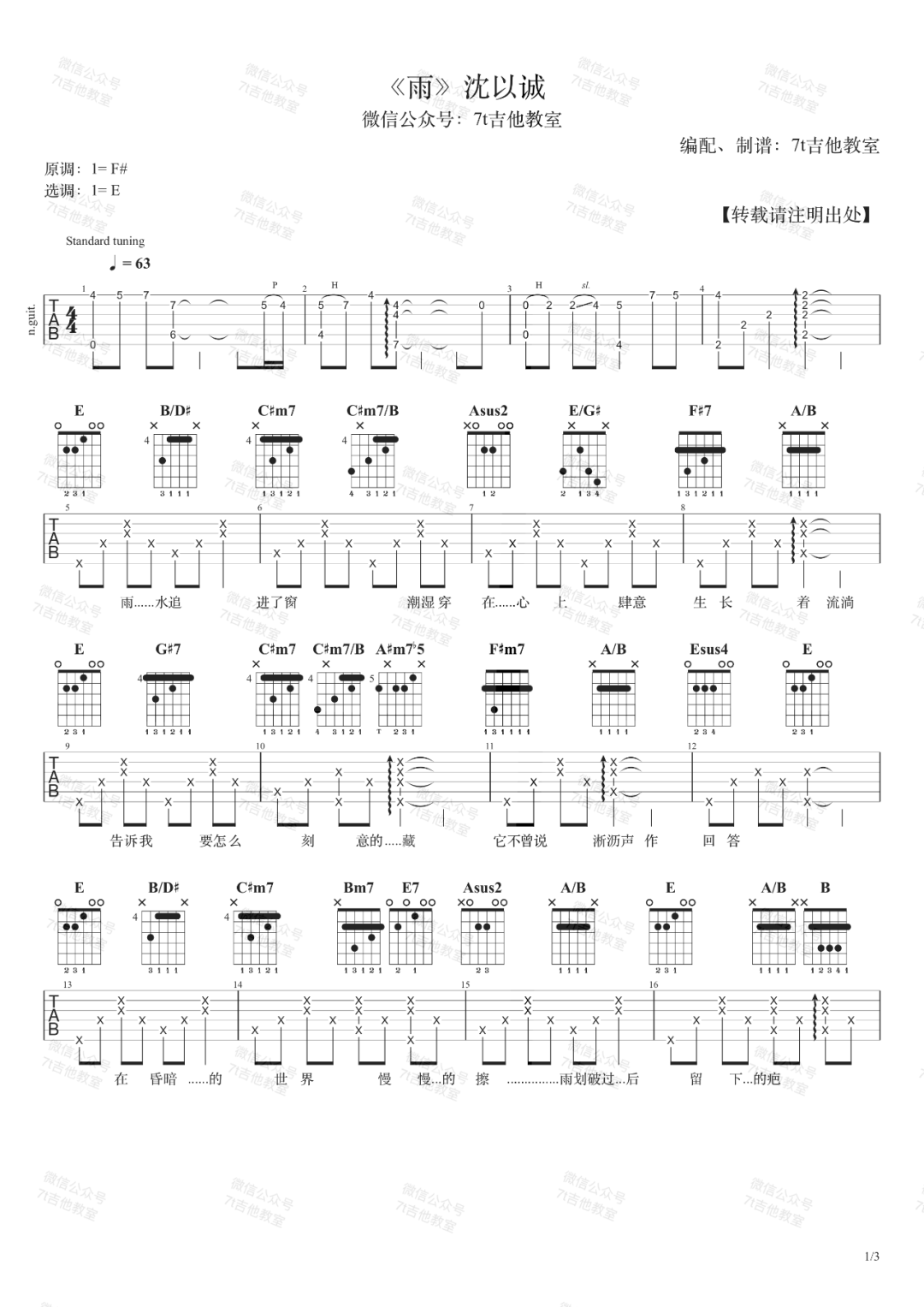 《沈以诚《雨吉他谱》(G调)》内容来自于互联网,不能保证内容的准确性与完整性,仅供学习交流欣赏,请勿用于其它用途,内容版权归原作者及来源网站所有,如有侵犯到您的权益请来信告知,我们将及时删除。