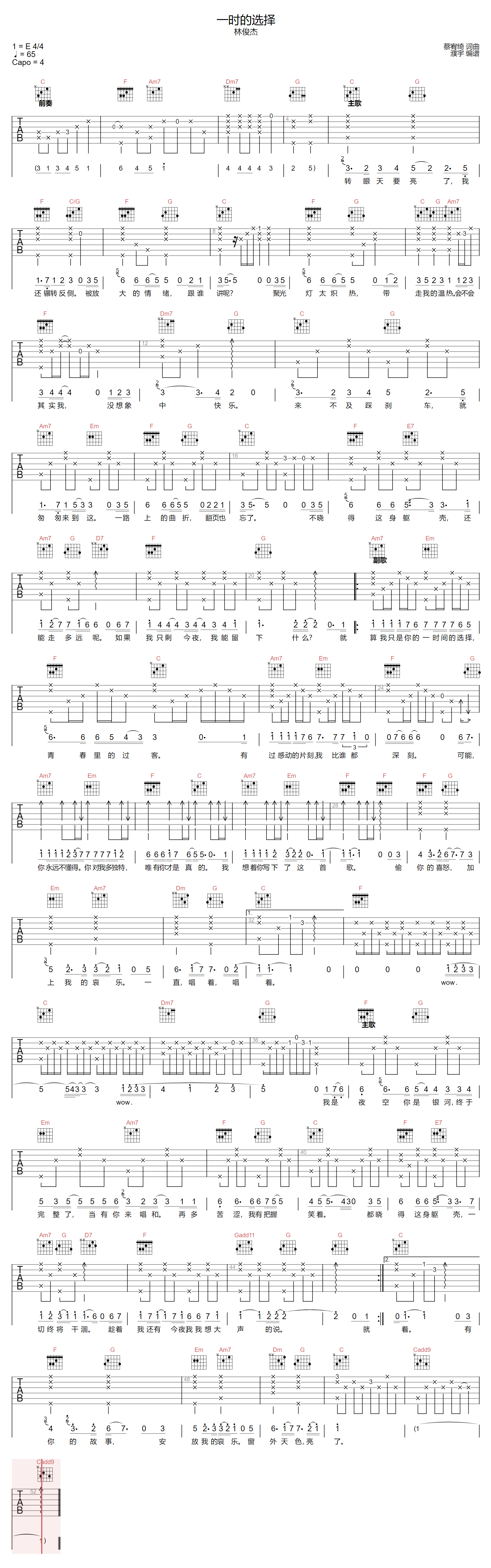 《林俊杰《一时的选择吉他谱》(G调)》内容来自于互联网,不能保证内容的准确性与完整性,仅供学习交流欣赏,请勿用于其它用途,内容版权归原作者及来源网站所有,如有侵犯到您的权益请来信告知,我们将及时删除。