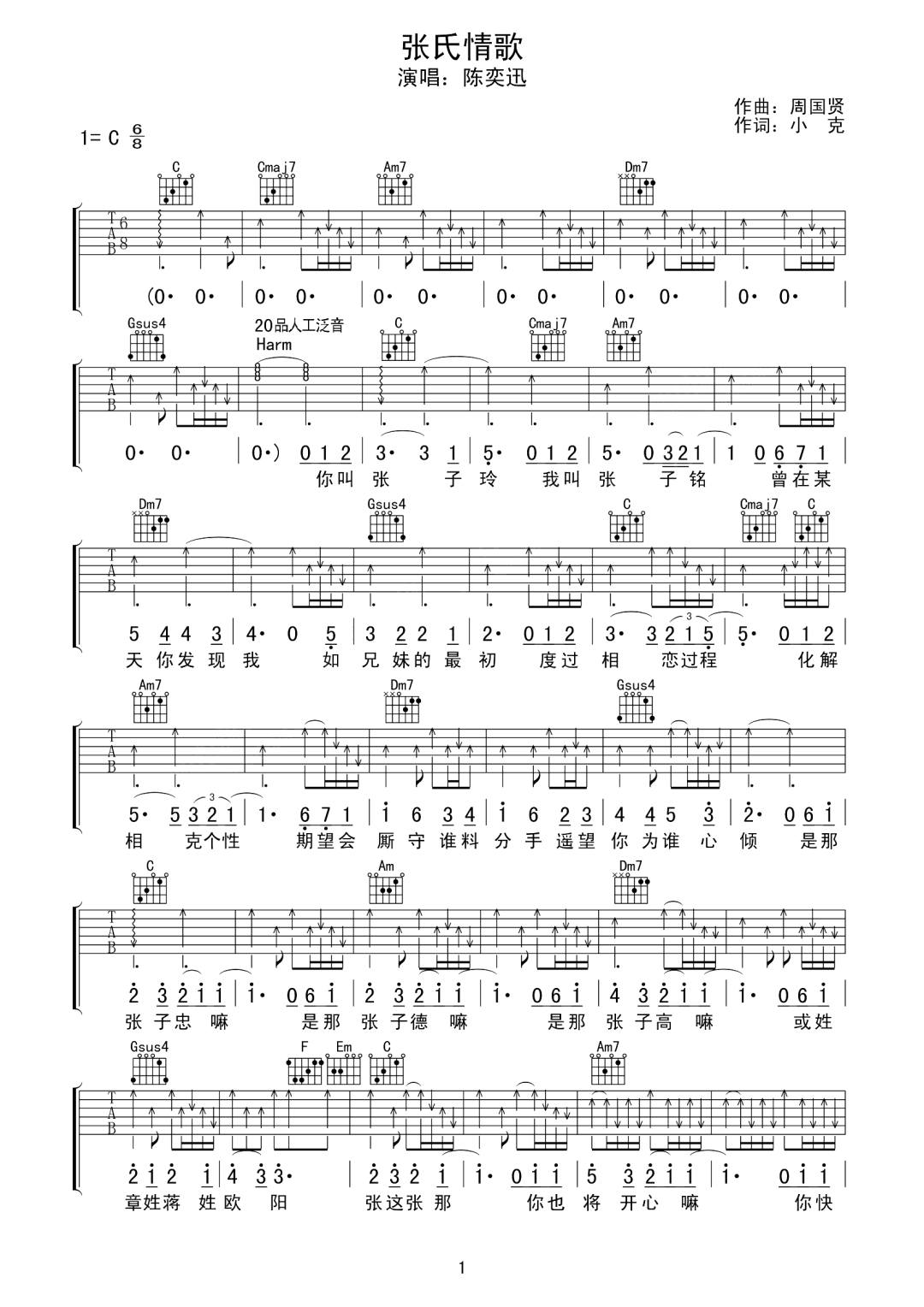 《陈奕迅《张氏情歌吉他谱》(G调)》内容来自于互联网,不能保证内容的准确性与完整性,仅供学习交流欣赏,请勿用于其它用途,内容版权归原作者及来源网站所有,如有侵犯到您的权益请来信告知,我们将及时删除。