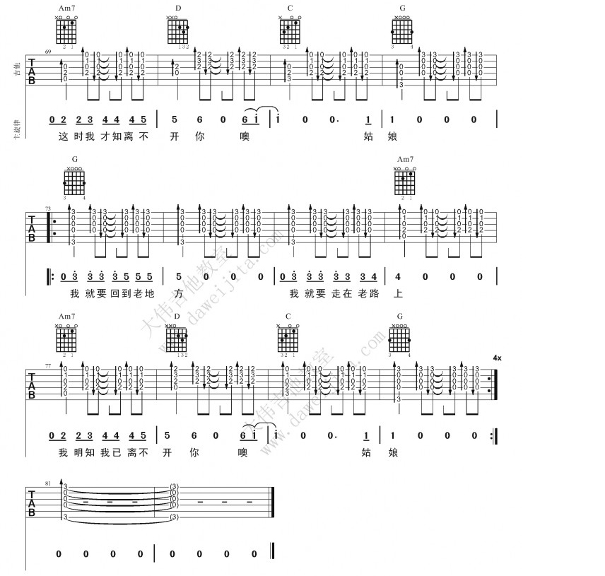 崔健《花房姑娘吉他谱》(E调)