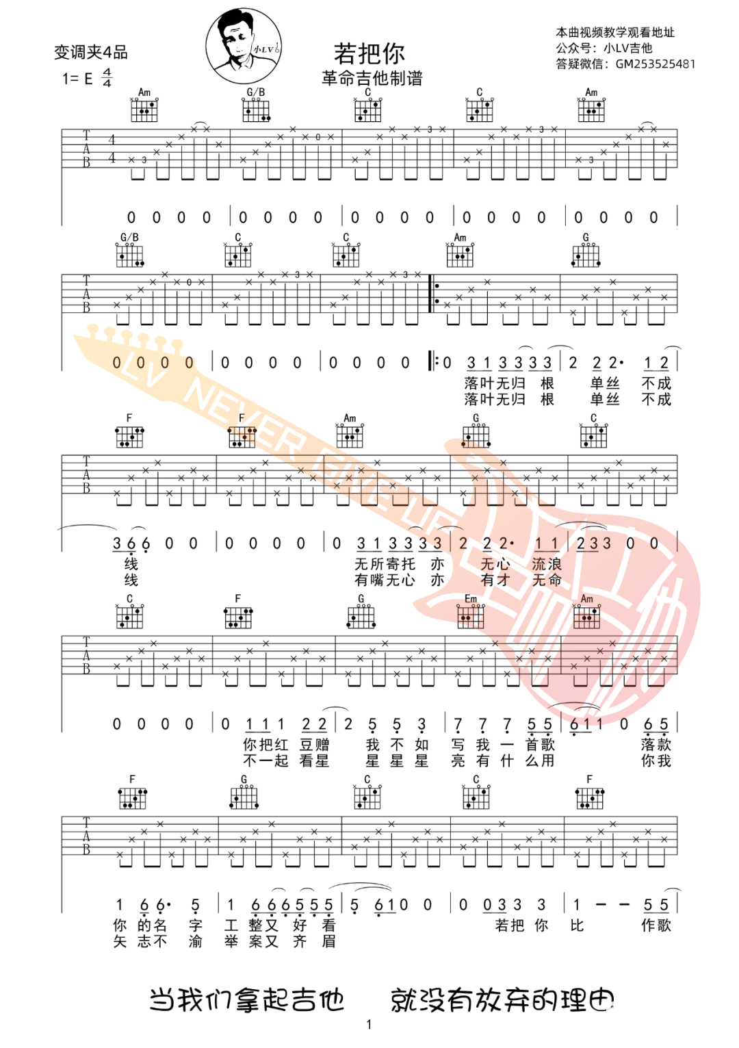 本文标题 《Kirsty刘瑾睿《若把你吉他谱》(C调)》,网址:https://www.21qupu.com/guitar/62820.html