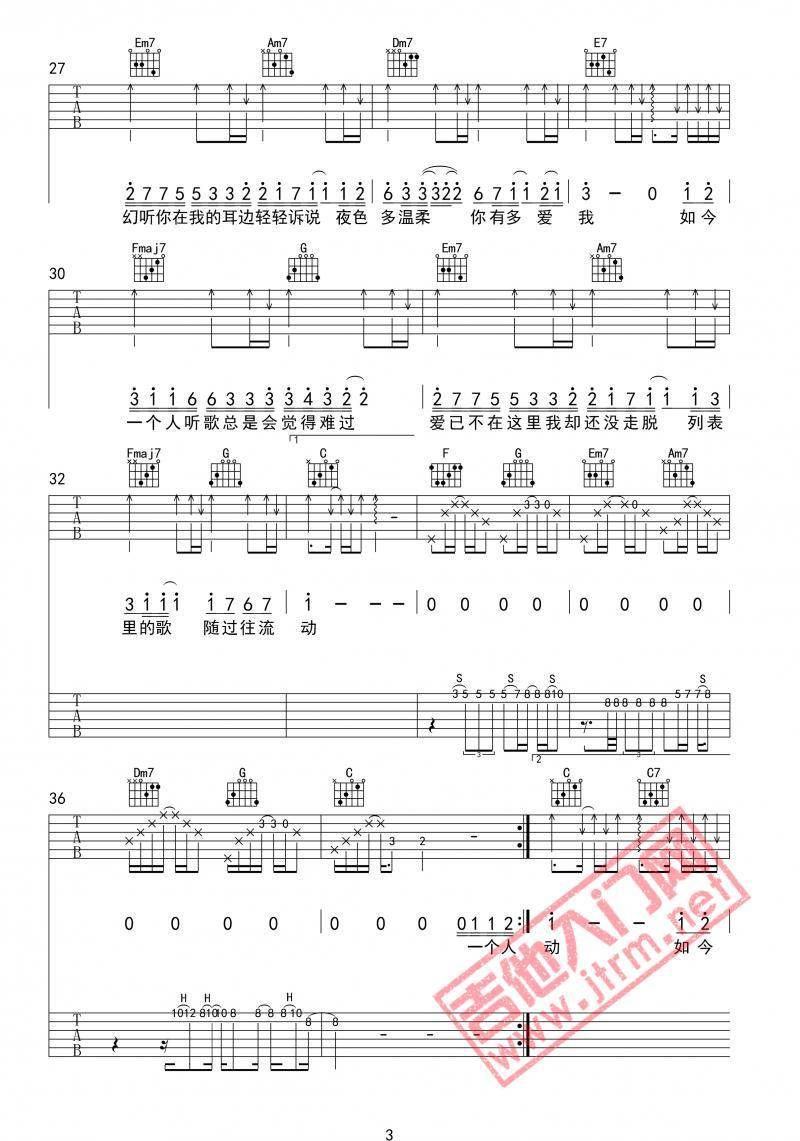 许嵩《幻听吉他谱》(G调)