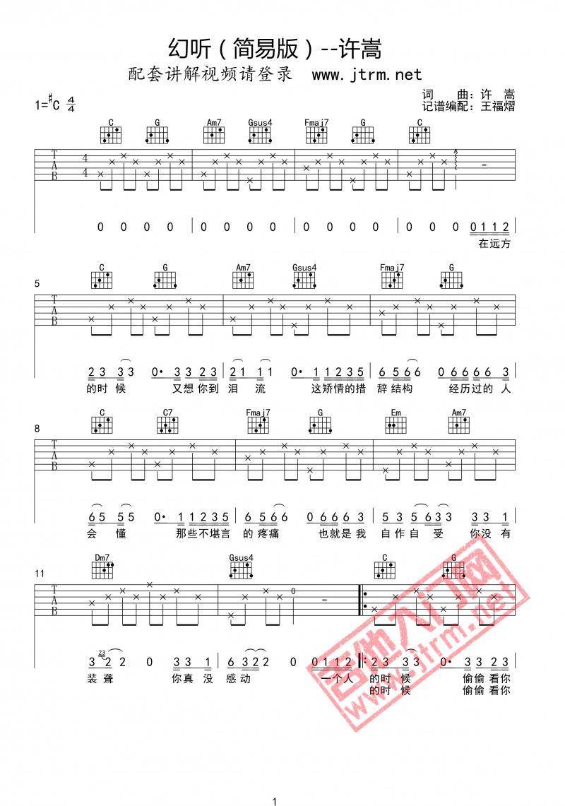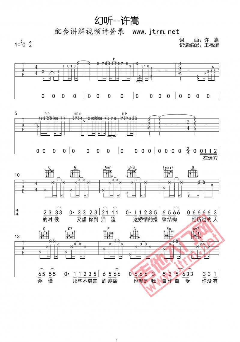 《许嵩《幻听吉他谱》(G调)》内容来自于互联网,不能保证内容的准确性与完整性,仅供学习交流欣赏,请勿用于其它用途,内容版权归原作者及来源网站所有,如有侵犯到您的权益请来信告知,我们将及时删除。