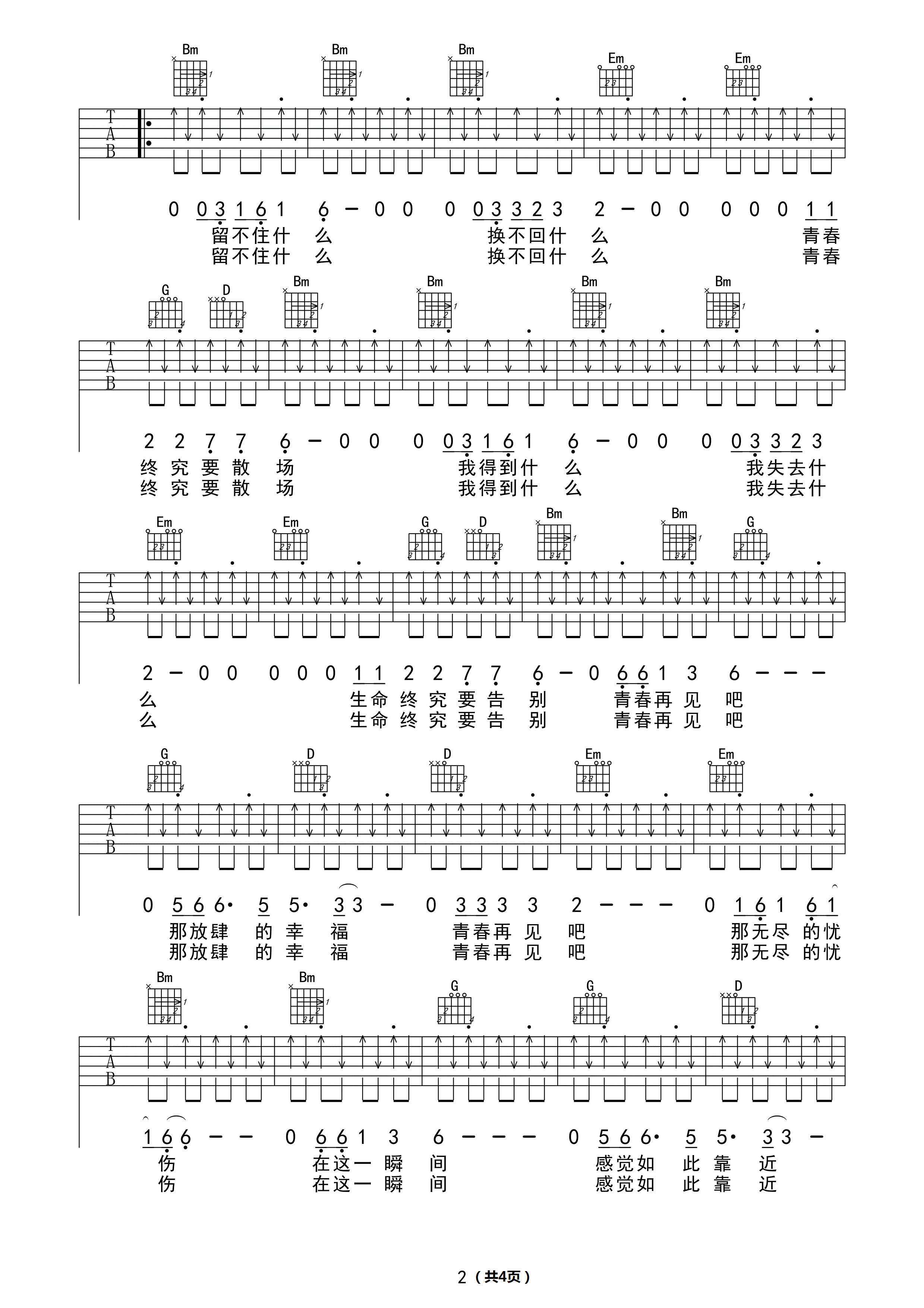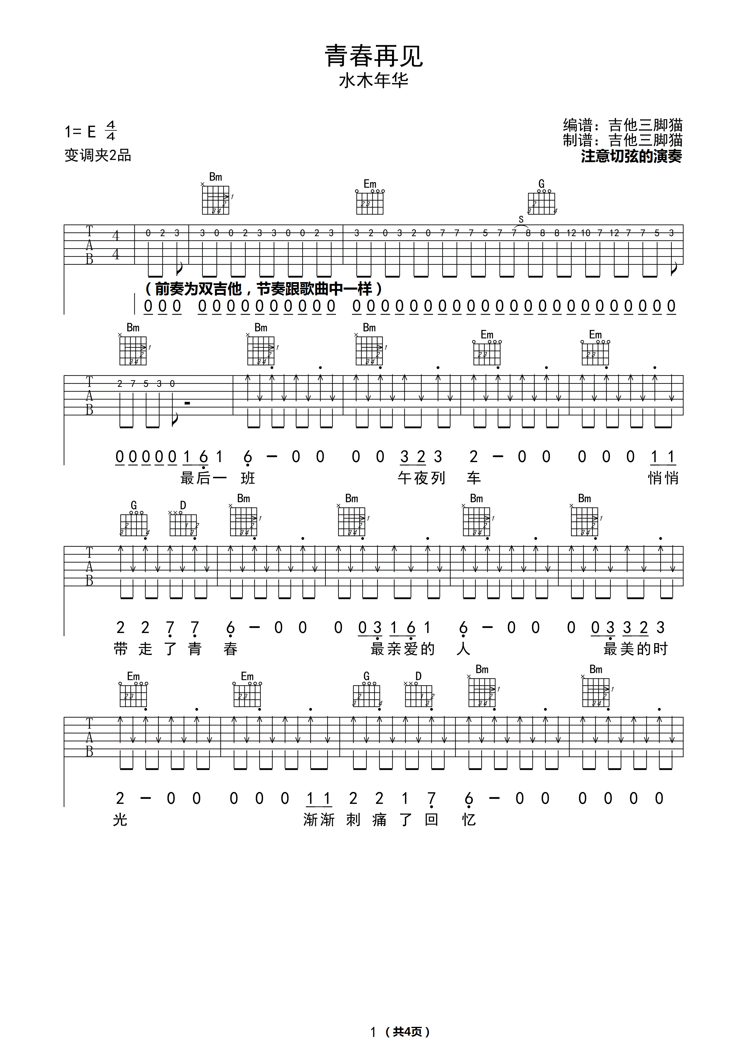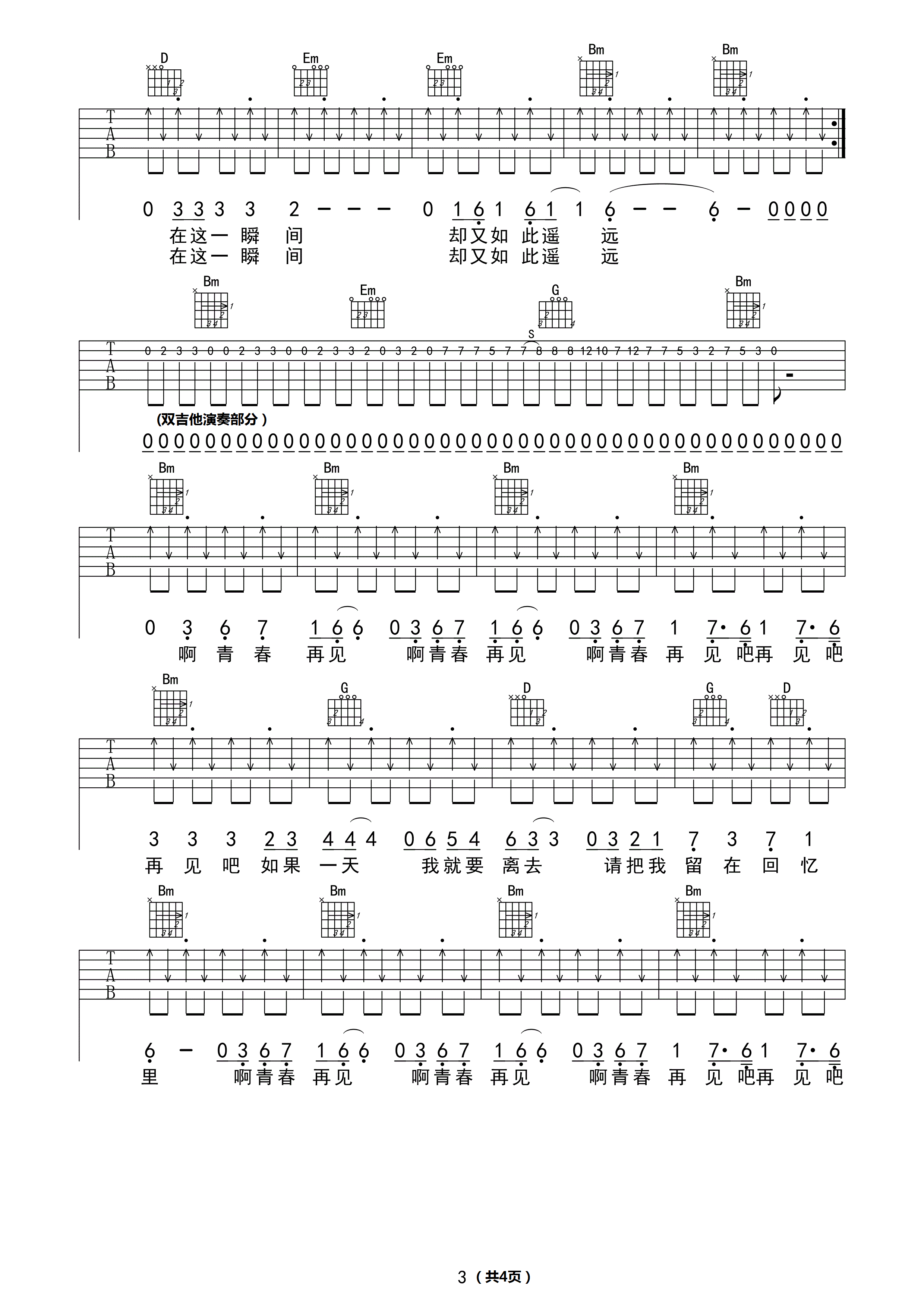 《水木年华《青春再见吉他谱》(G调)》内容来自于互联网,不能保证内容的准确性与完整性,仅供学习交流欣赏,请勿用于其它用途,内容版权归原作者及来源网站所有,如有侵犯到您的权益请来信告知,我们将及时删除。