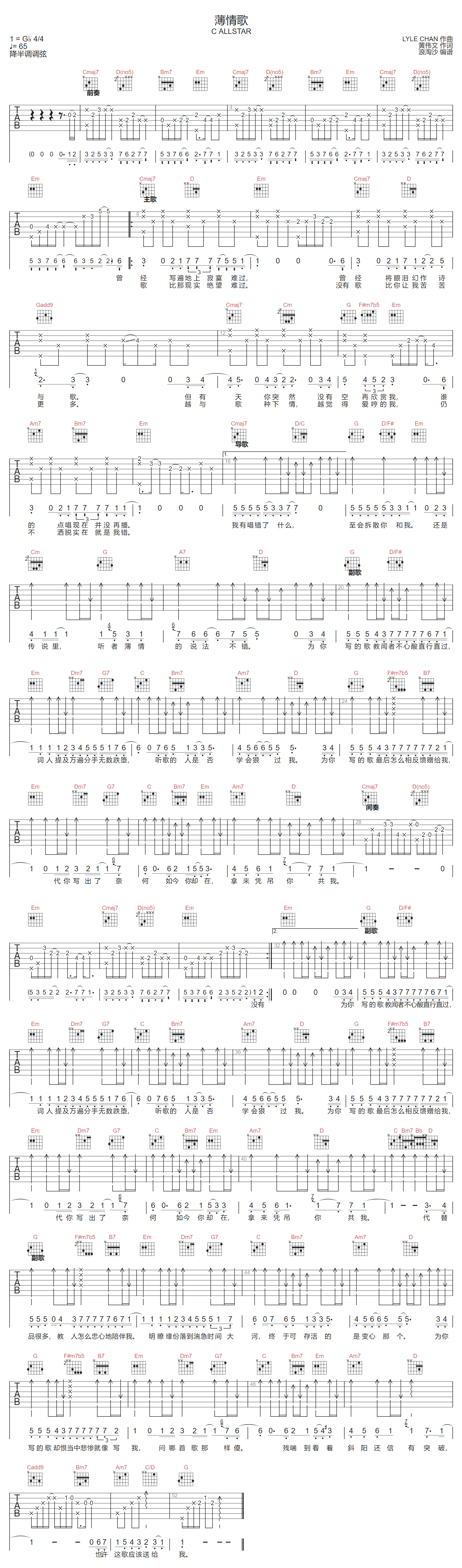 《C Allstar《薄情歌吉他谱》(C调)》内容来自于互联网,不能保证内容的准确性与完整性,仅供学习交流欣赏,请勿用于其它用途,内容版权归原作者及来源网站所有,如有侵犯到您的权益请来信告知,我们将及时删除。