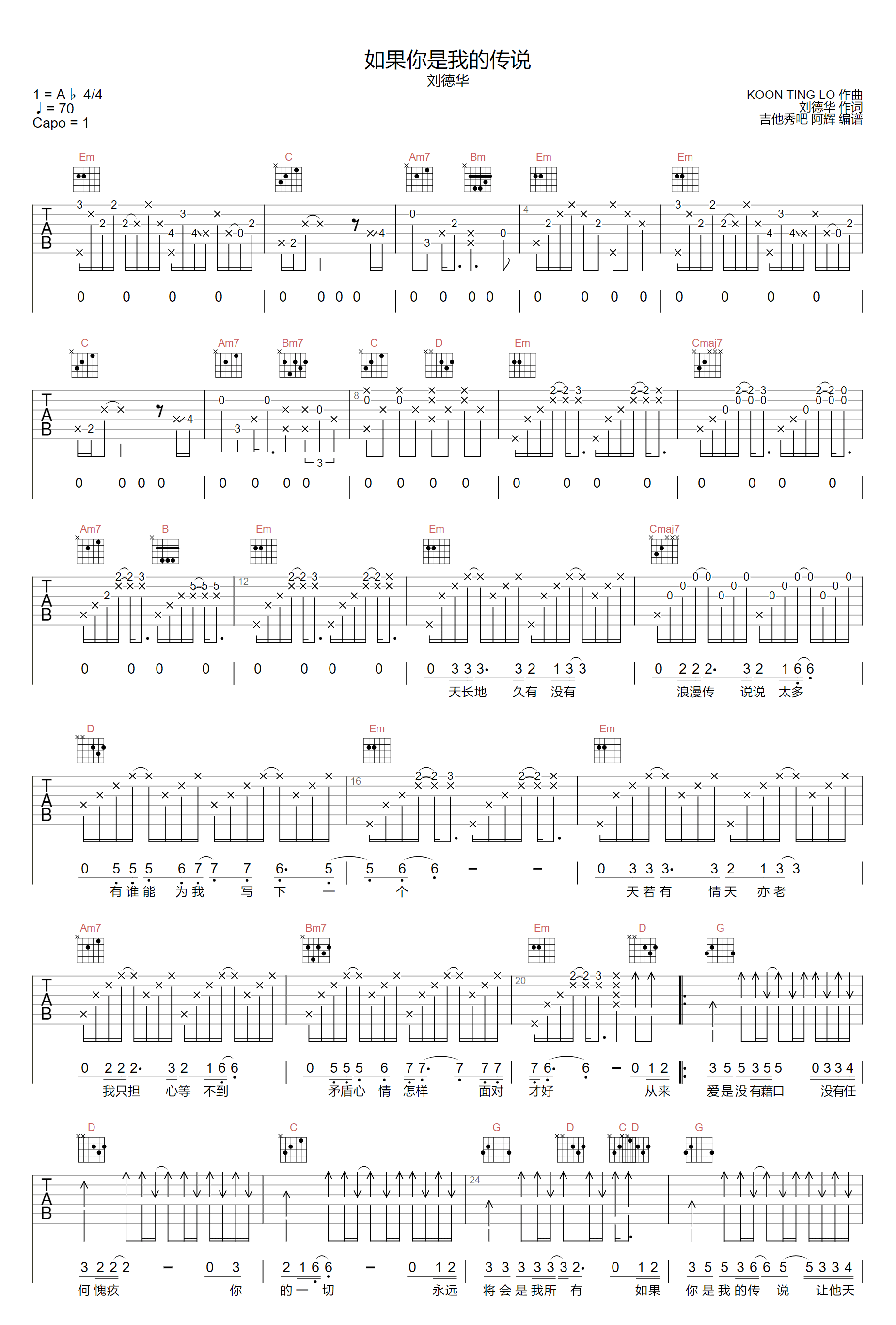 《刘德华《如果你是我的传说吉他谱》(G调)》内容来自于互联网,不能保证内容的准确性与完整性,仅供学习交流欣赏,请勿用于其它用途,内容版权归原作者及来源网站所有,如有侵犯到您的权益请来信告知,我们将及时删除。