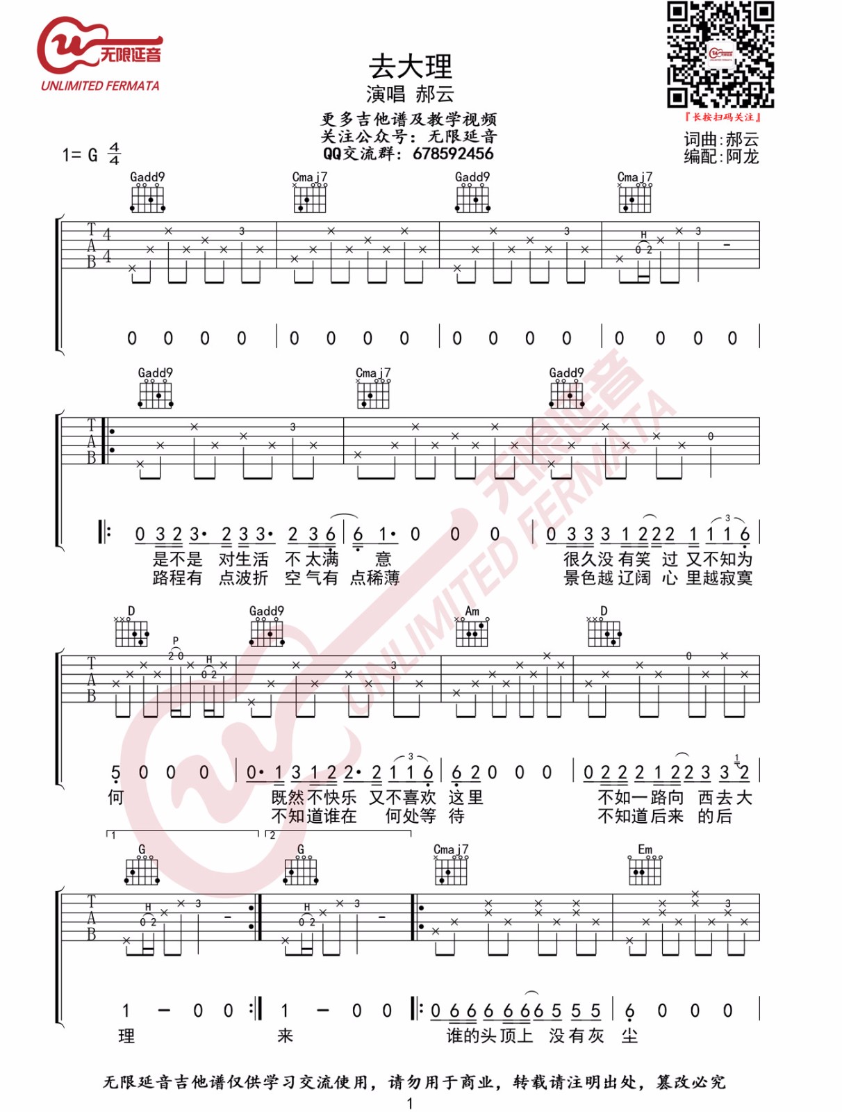 《郝云《去大理吉他谱》(C调)》内容来自于互联网,不能保证内容的准确性与完整性,仅供学习交流欣赏,请勿用于其它用途,内容版权归原作者及来源网站所有,如有侵犯到您的权益请来信告知,我们将及时删除。