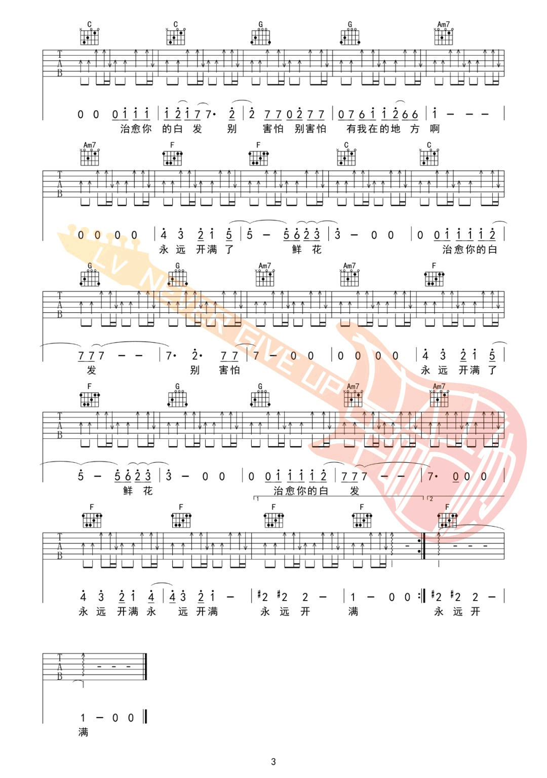 《鲜花》由回春丹乐队演唱,以D调谱写,旋律轻快灵动,歌词朗朗上口,唤起对家乡的温暖回忆与思念。歌曲通过尤克里里弹奏,节奏明快,强调扫弦与切分技巧,营造出活泼而富有感染力的音乐氛围。整体风格清新自然,情感真挚,易于传唱。
