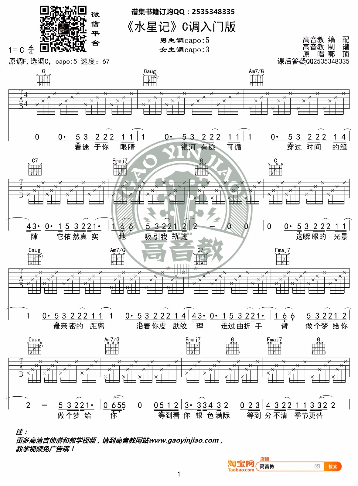 《郭顶《水星记吉他谱》(C调)》内容来自于互联网,不能保证内容的准确性与完整性,仅供学习交流欣赏,请勿用于其它用途,内容版权归原作者及来源网站所有,如有侵犯到您的权益请来信告知,我们将及时删除。