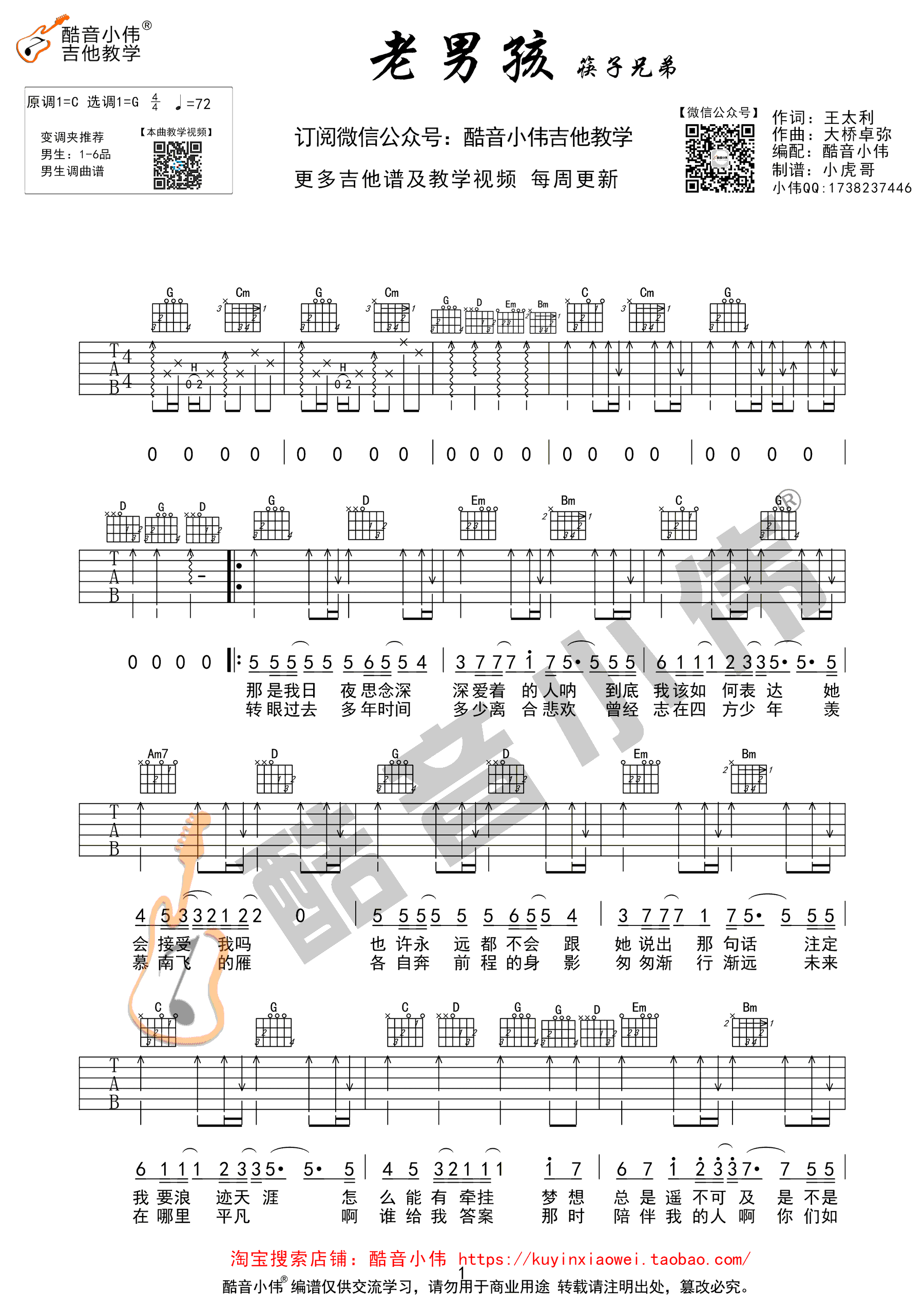 《筷子兄弟《老男孩吉他谱》(G调)》内容来自于互联网,不能保证内容的准确性与完整性,仅供学习交流欣赏,请勿用于其它用途,内容版权归原作者及来源网站所有,如有侵犯到您的权益请来信告知,我们将及时删除。