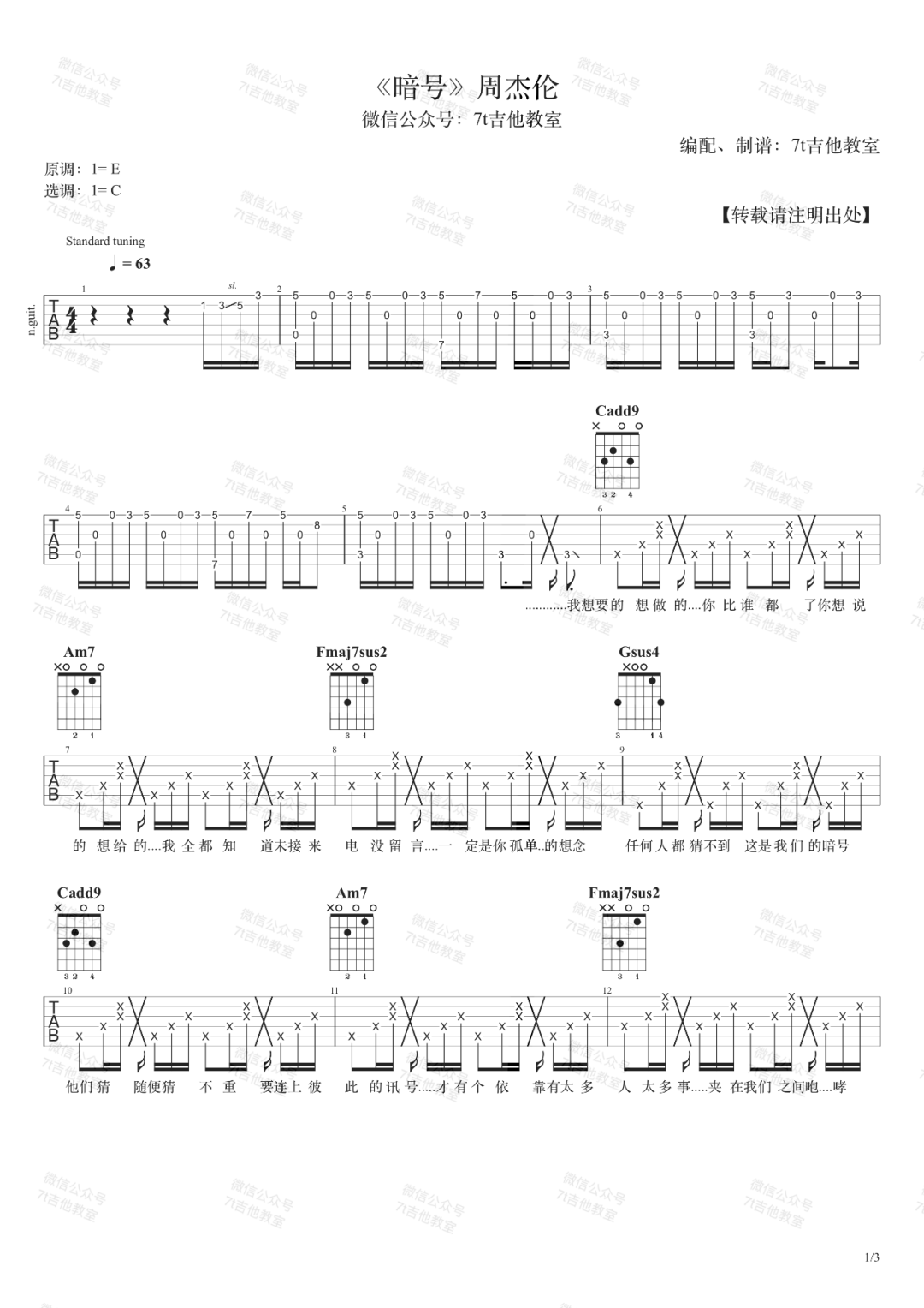 《周杰伦《暗号吉他谱》(C调)》内容来自于互联网,不能保证内容的准确性与完整性,仅供学习交流欣赏,请勿用于其它用途,内容版权归原作者及来源网站所有,如有侵犯到您的权益请来信告知,我们将及时删除。