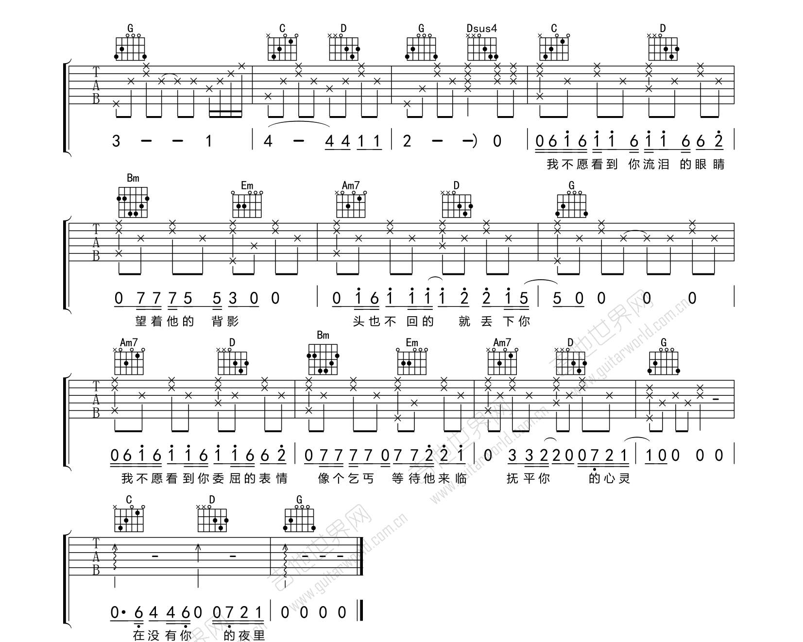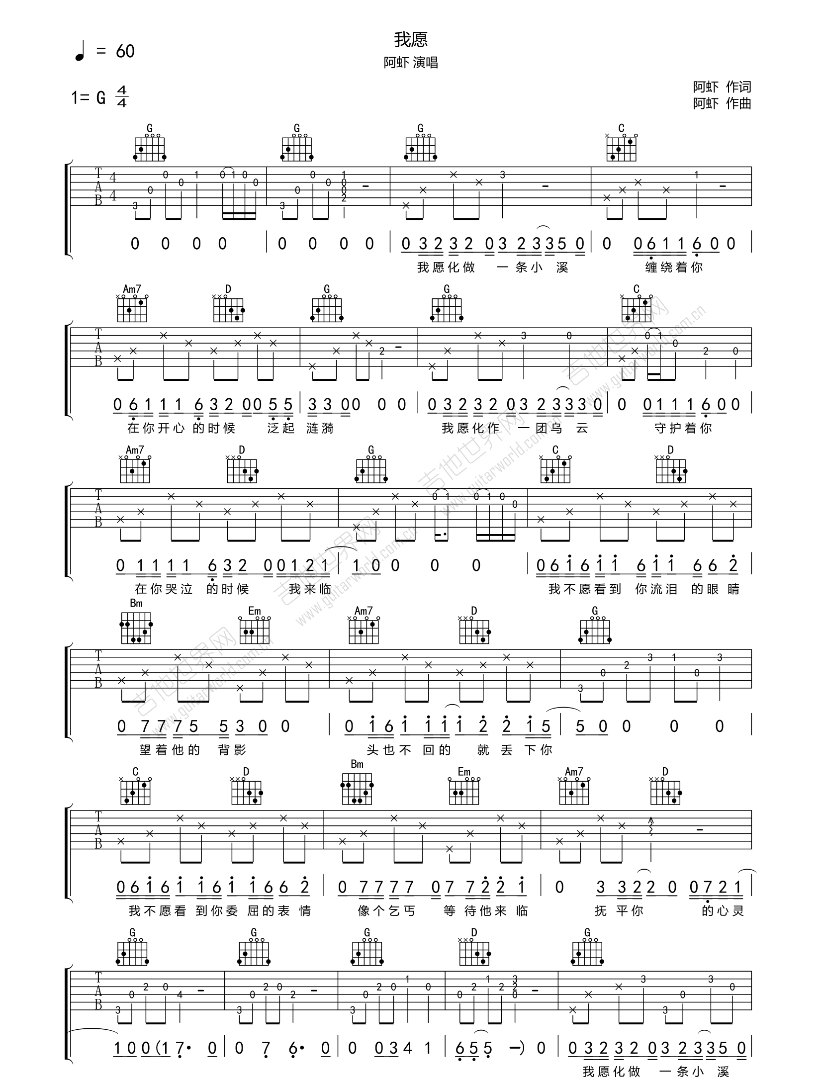 《阿虾《我愿吉他谱》(G调)》内容来自于互联网,不能保证内容的准确性与完整性,仅供学习交流欣赏,请勿用于其它用途,内容版权归原作者及来源网站所有,如有侵犯到您的权益请来信告知,我们将及时删除。