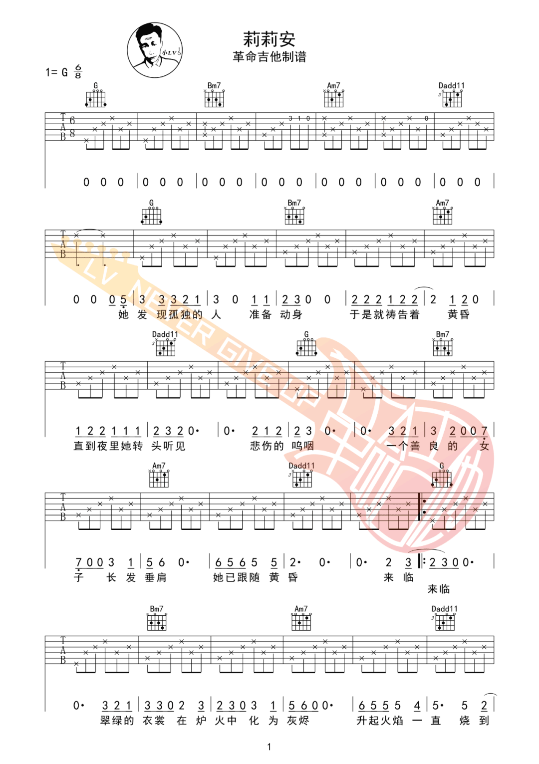 《宋冬野《莉莉安吉他谱》(C调)》内容来自于互联网,不能保证内容的准确性与完整性,仅供学习交流欣赏,请勿用于其它用途,内容版权归原作者及来源网站所有,如有侵犯到您的权益请来信告知,我们将及时删除。