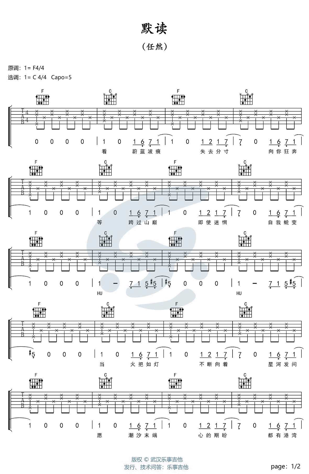 《任然《默读吉他谱》(C调)》内容来自于互联网,不能保证内容的准确性与完整性,仅供学习交流欣赏,请勿用于其它用途,内容版权归原作者及来源网站所有,如有侵犯到您的权益请来信告知,我们将及时删除。