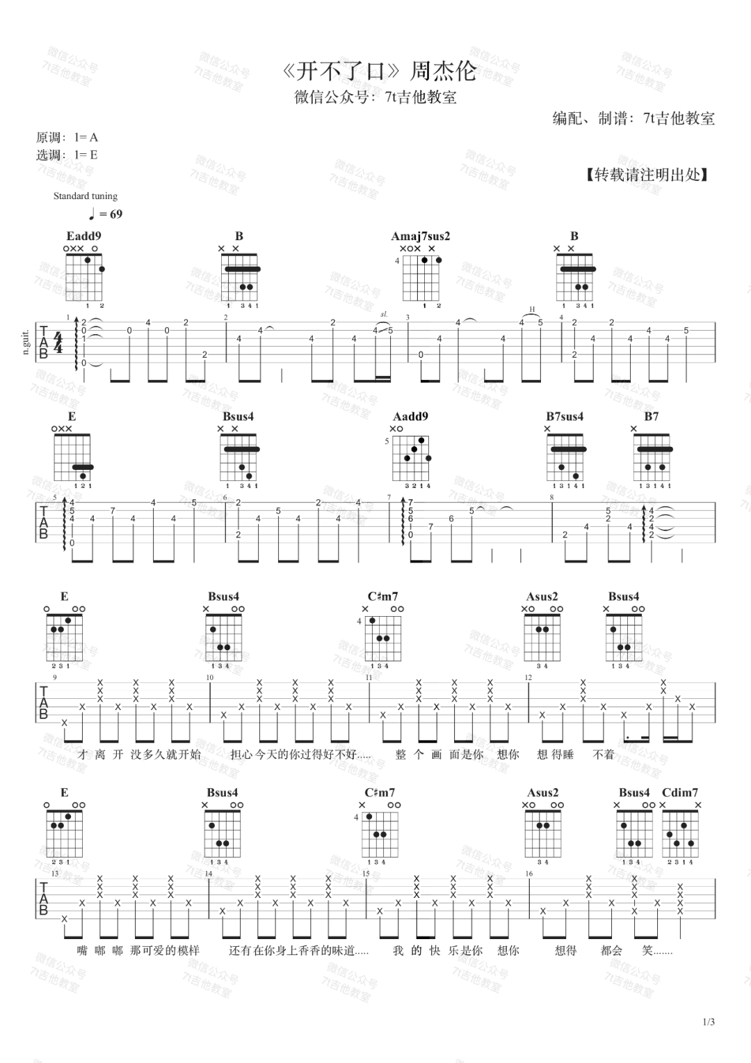 《周杰伦《开不了口吉他谱》(G调)》内容来自于互联网,不能保证内容的准确性与完整性,仅供学习交流欣赏,请勿用于其它用途,内容版权归原作者及来源网站所有,如有侵犯到您的权益请来信告知,我们将及时删除。
