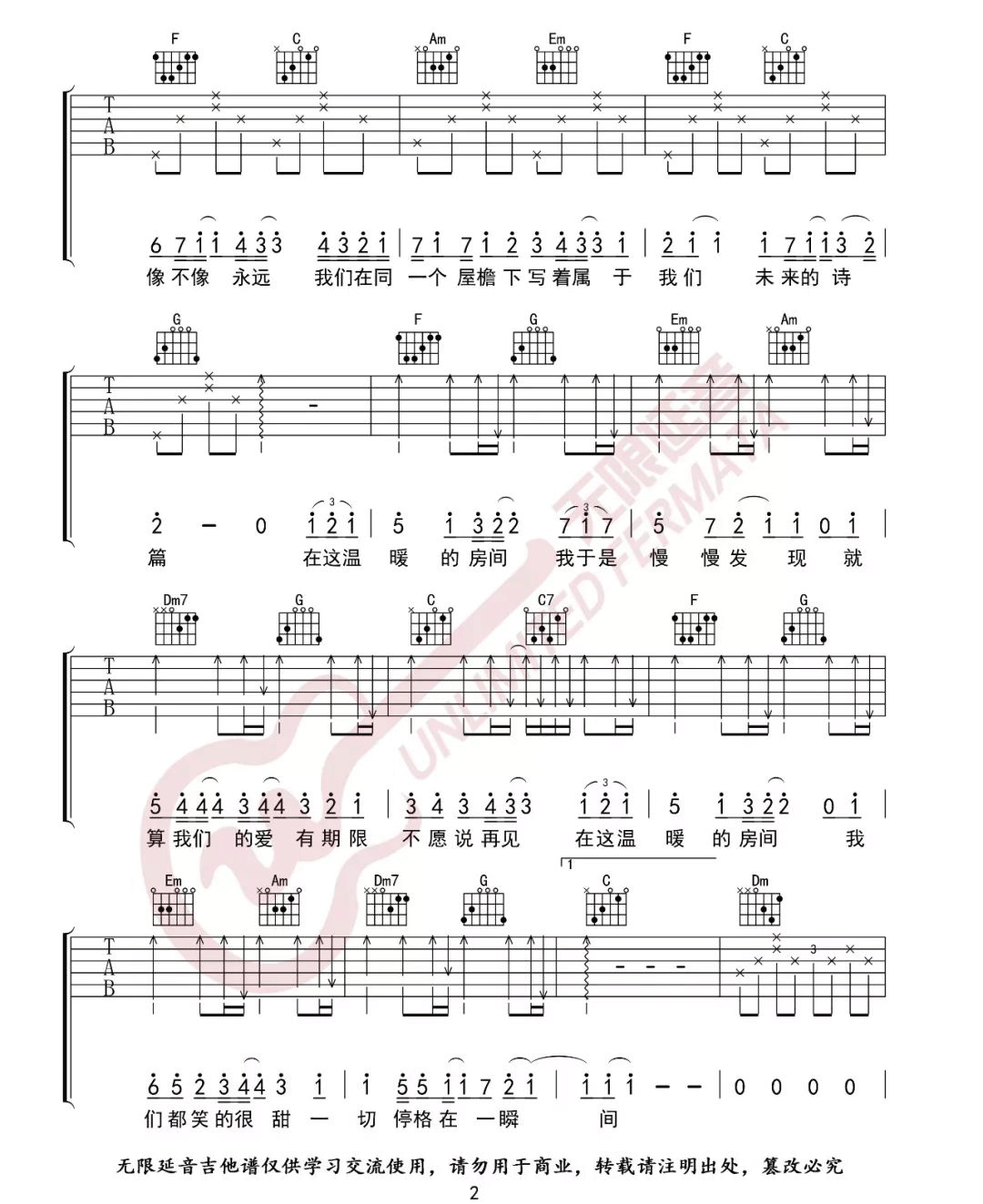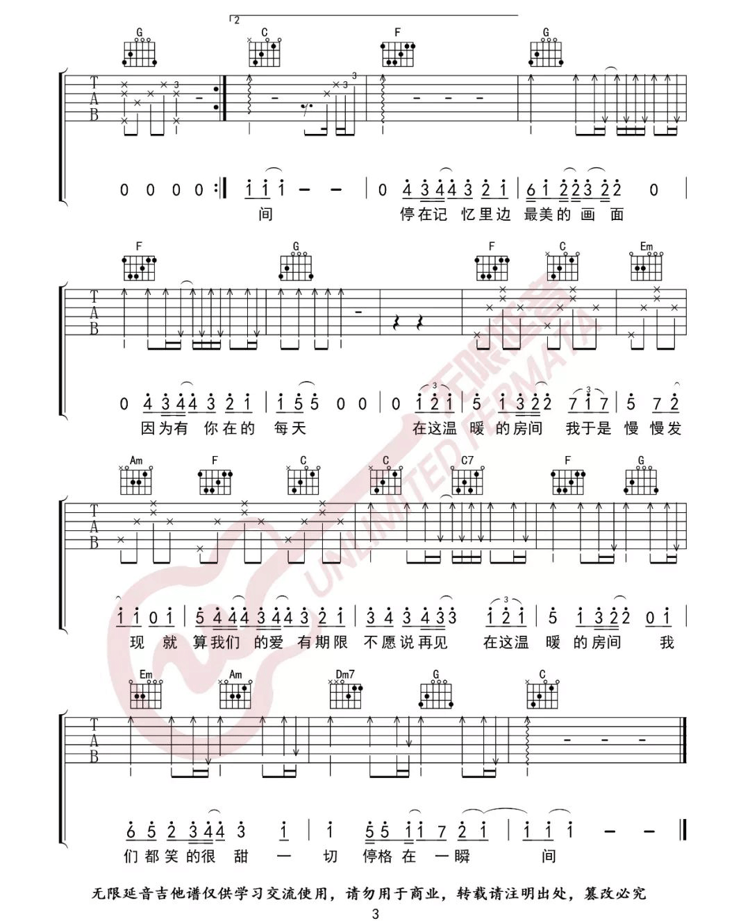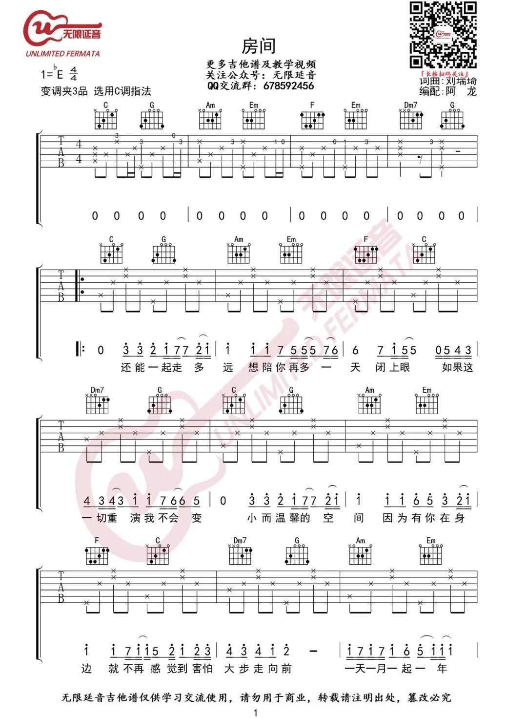 《刘瑞琦《房间吉他谱》(G调)》内容来自于互联网,不能保证内容的准确性与完整性,仅供学习交流欣赏,请勿用于其它用途,内容版权归原作者及来源网站所有,如有侵犯到您的权益请来信告知,我们将及时删除。